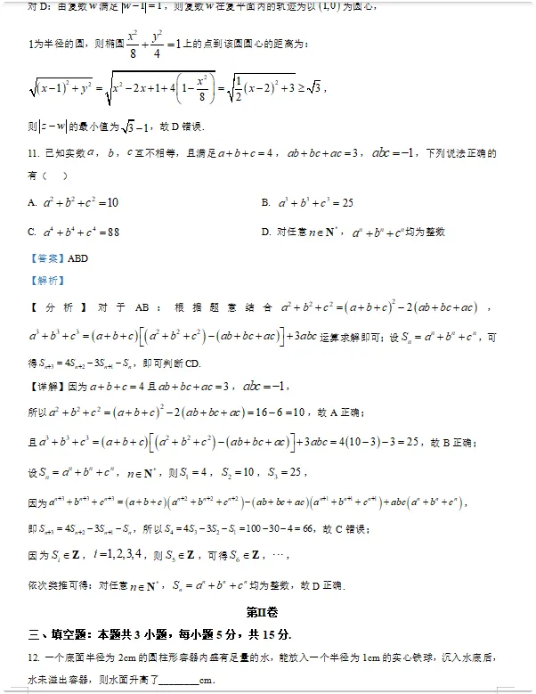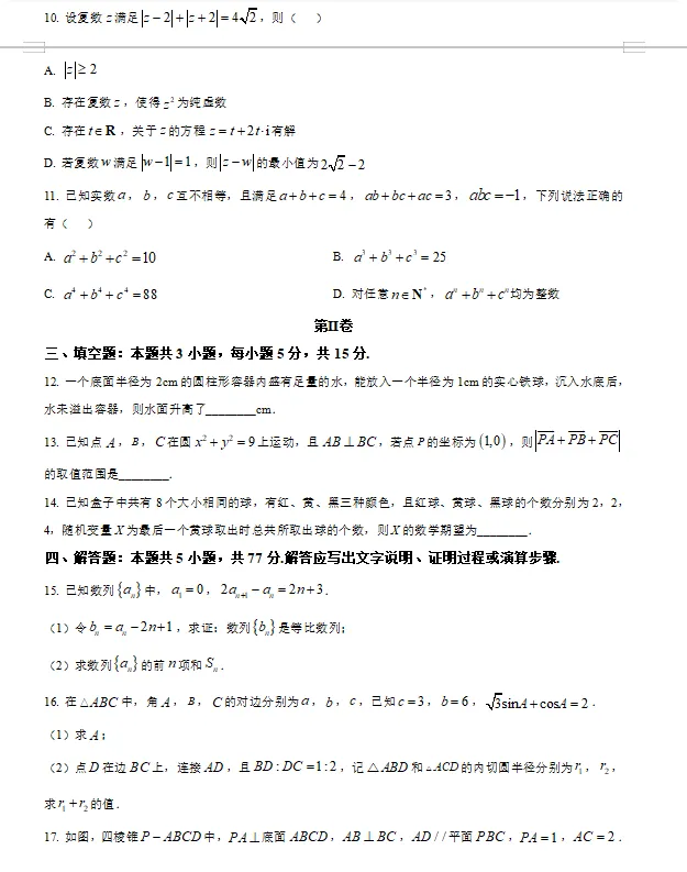 2026年三省三校高三数学试卷及答案