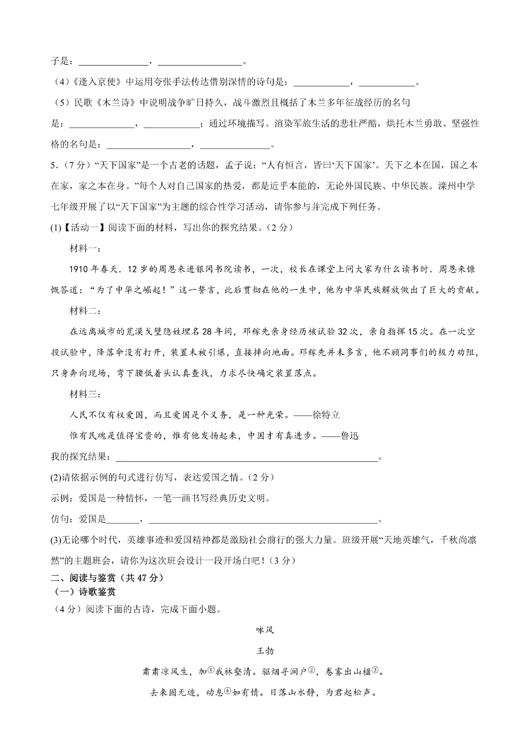 26春七年级下册语文《第一次月考试卷2套》【考试版+解析版】高清电子版可打印