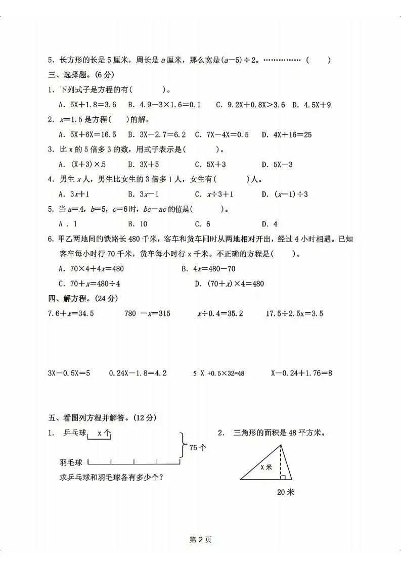 部编版五下语文月考试卷20页含答案解析