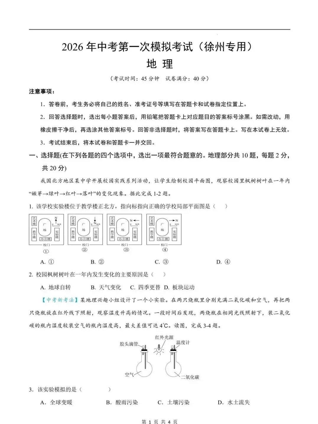 2026 徐州市八年级地生会考