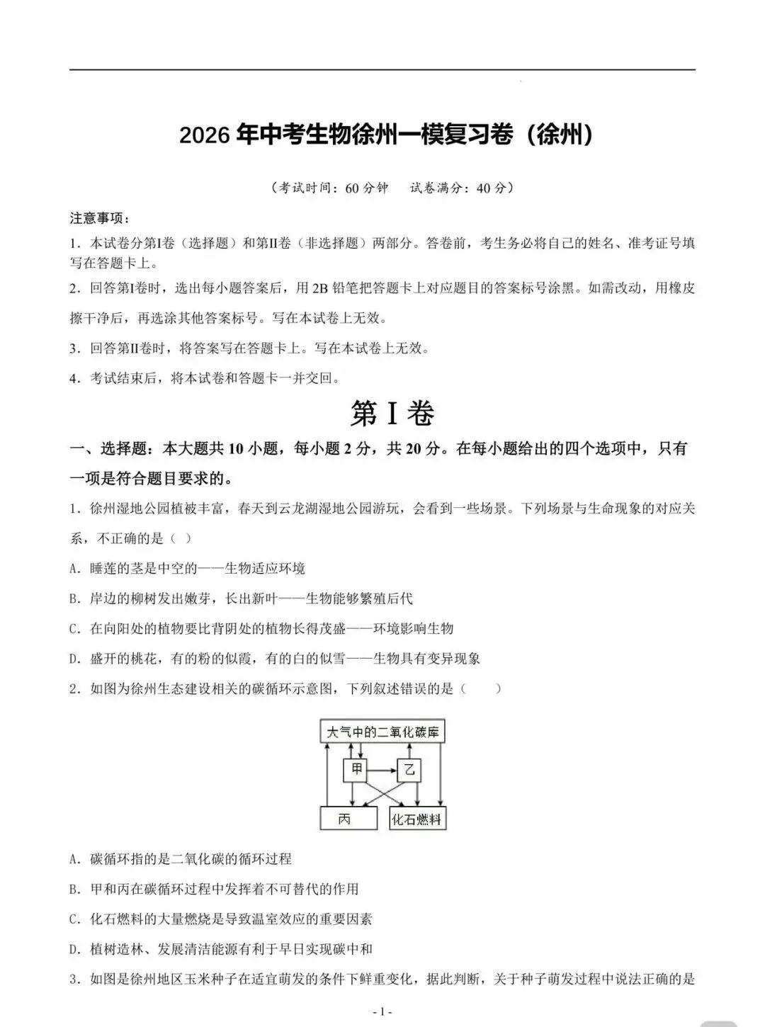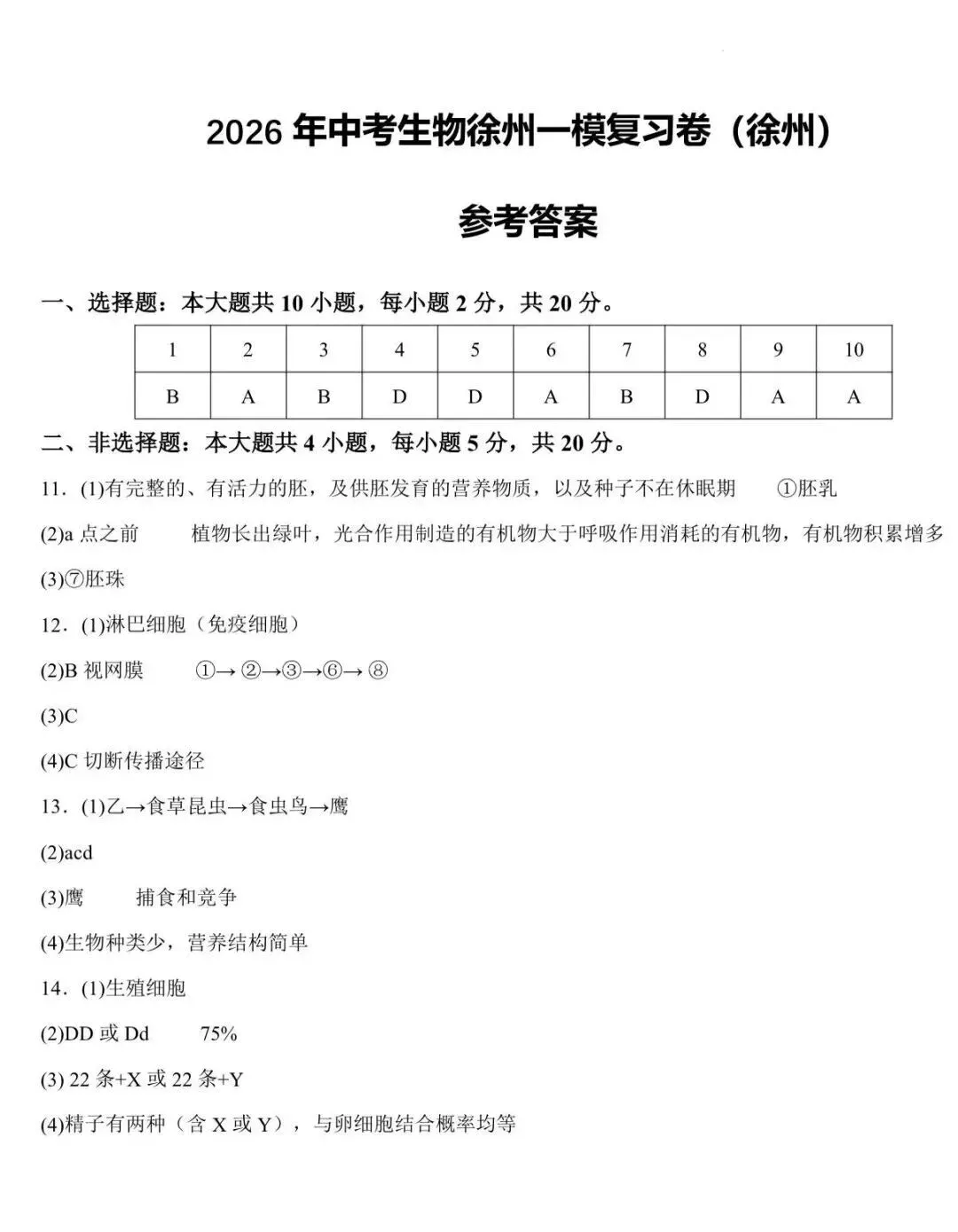 2026 徐州市八年级地理+生物会考试卷+答案
