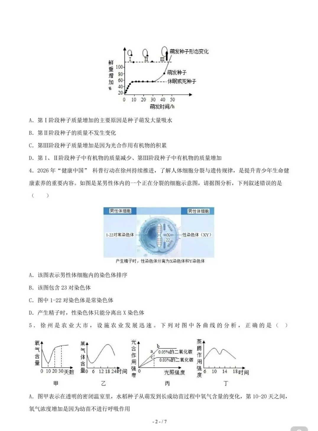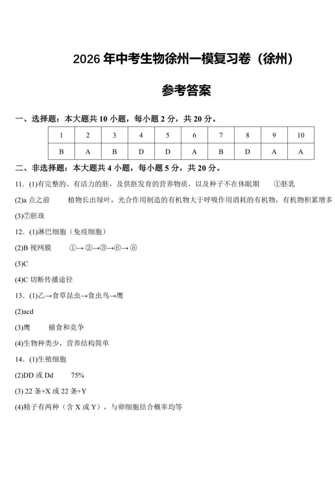 >2026 徐州市八年级地理+生物会考试卷+答案