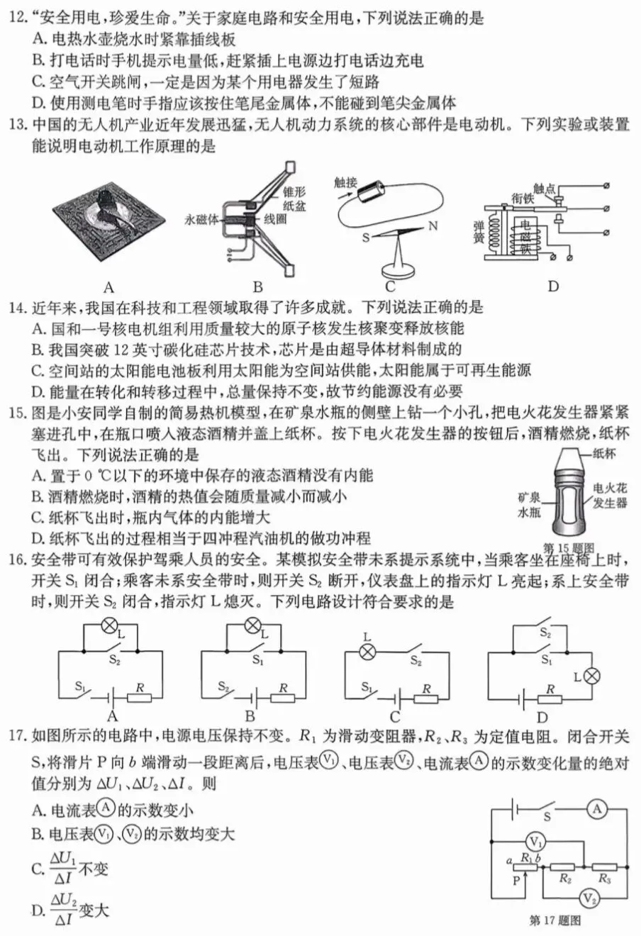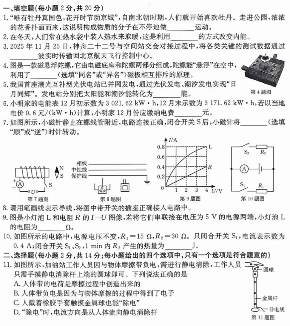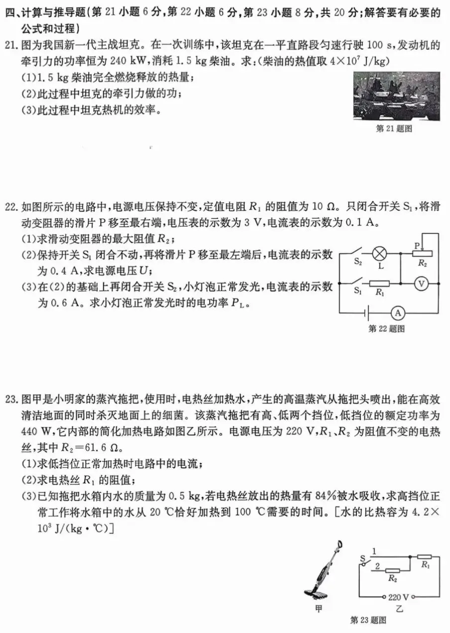 【物理】2025届上海各区初三二模物理试卷+答案!高清可打印
