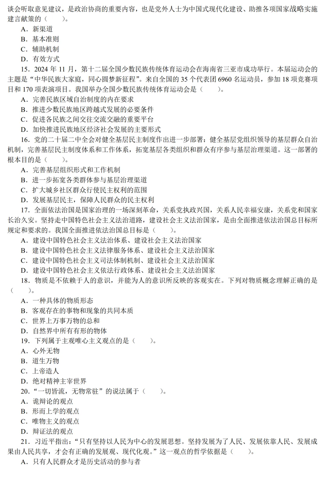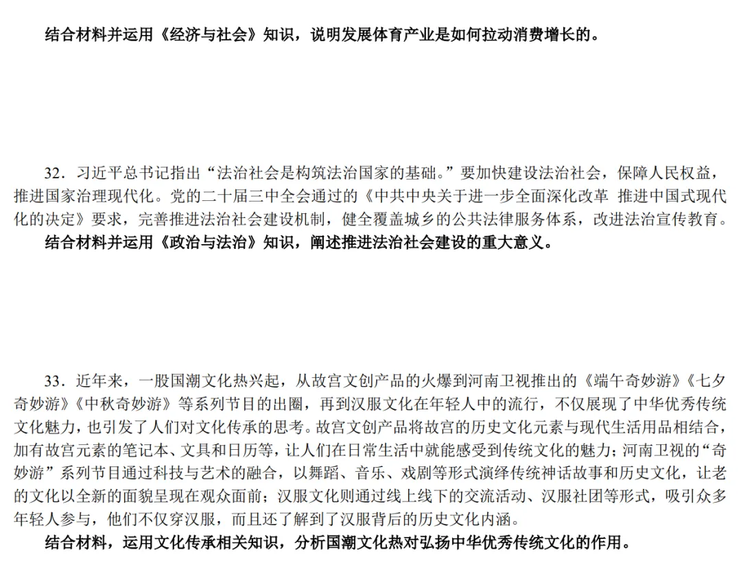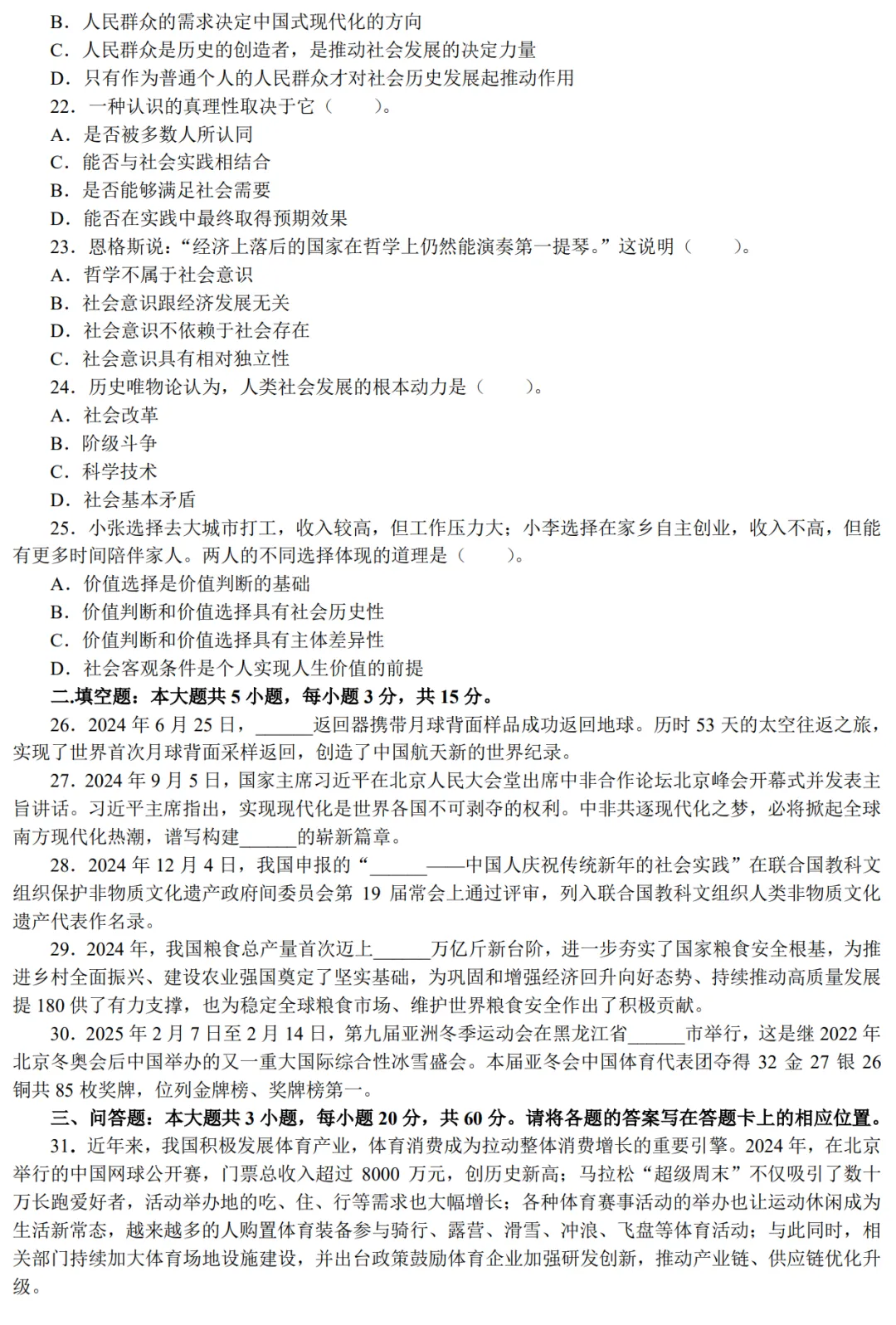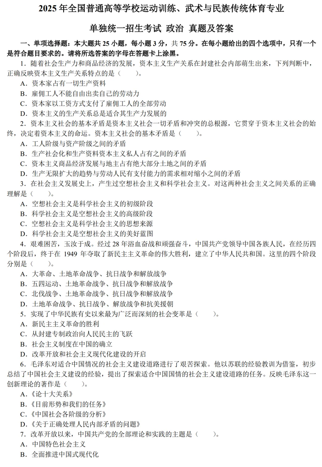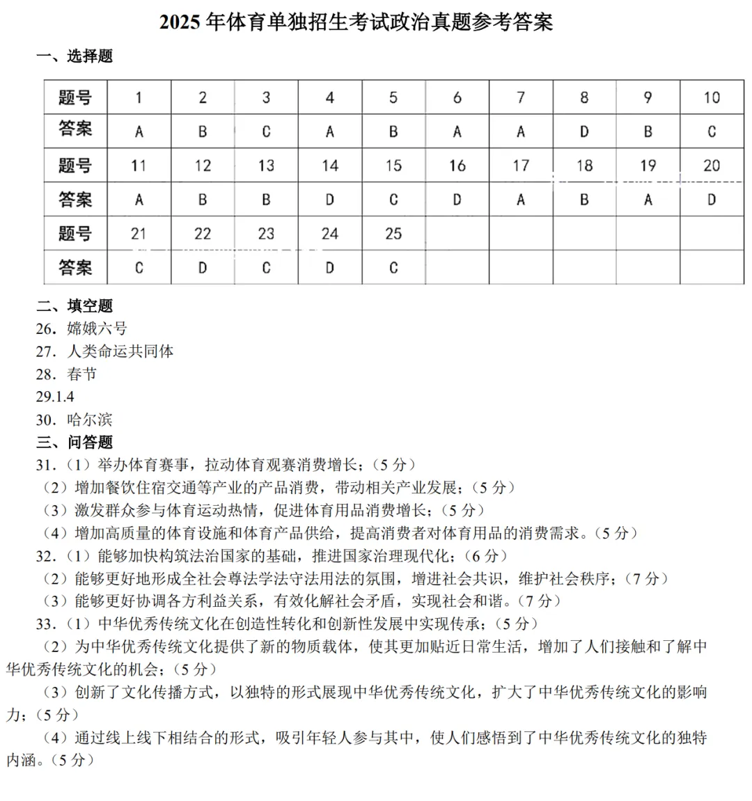2025年全国普通高等学校运动训练、武术与民族传统体育专业单独统一招生考试政治真题及答案【完整版】