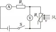 D选项:电压表和电流表示数之比为R1的阻值,风速变化时,R1的阻值会变化,故D错误;