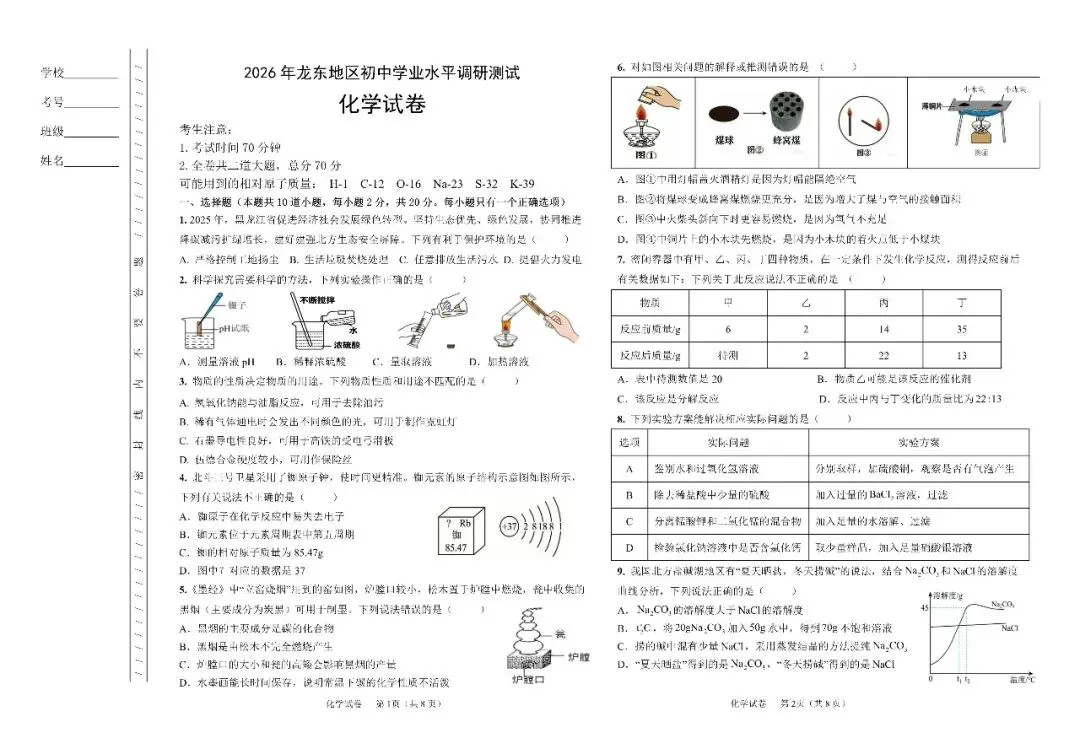 当前位置:首页>考研真题>试卷评析丨[化学]2026年龙东地区初中学业水平调研测试(鸡西命制)全维度深度解析(后附全科及答案PDF下载)