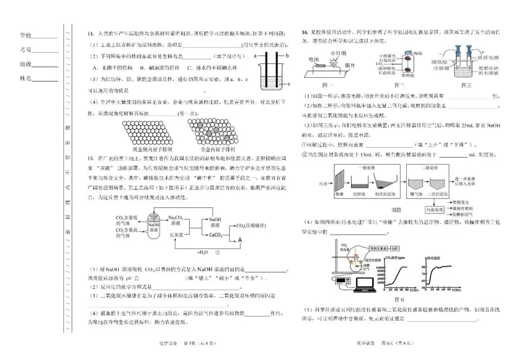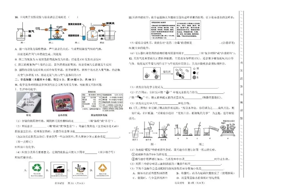 试题全面覆盖新课标规定的5个学习主题——科学探究与化学实验、物质的性质与应用、物质的组成与结构、物质的化学变化、化学与社会·跨学科实践,充分体现了初中化学“宏微结合、变化守恒、模型认知、实验探究、绿色应用”的学科特征,既注重对化学核心基础知识、基本技能的考查,又强化对学生化学核心素养、真实问题解决能力、科学探究能力的综合评价,是一套兼具科学性、实践性、地域性与创新性的高质量调研试题。