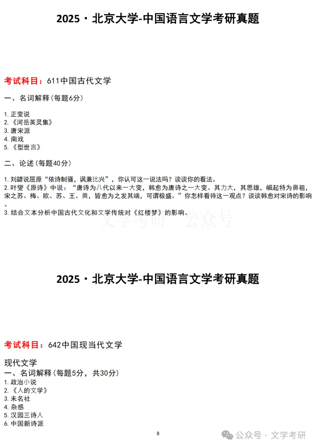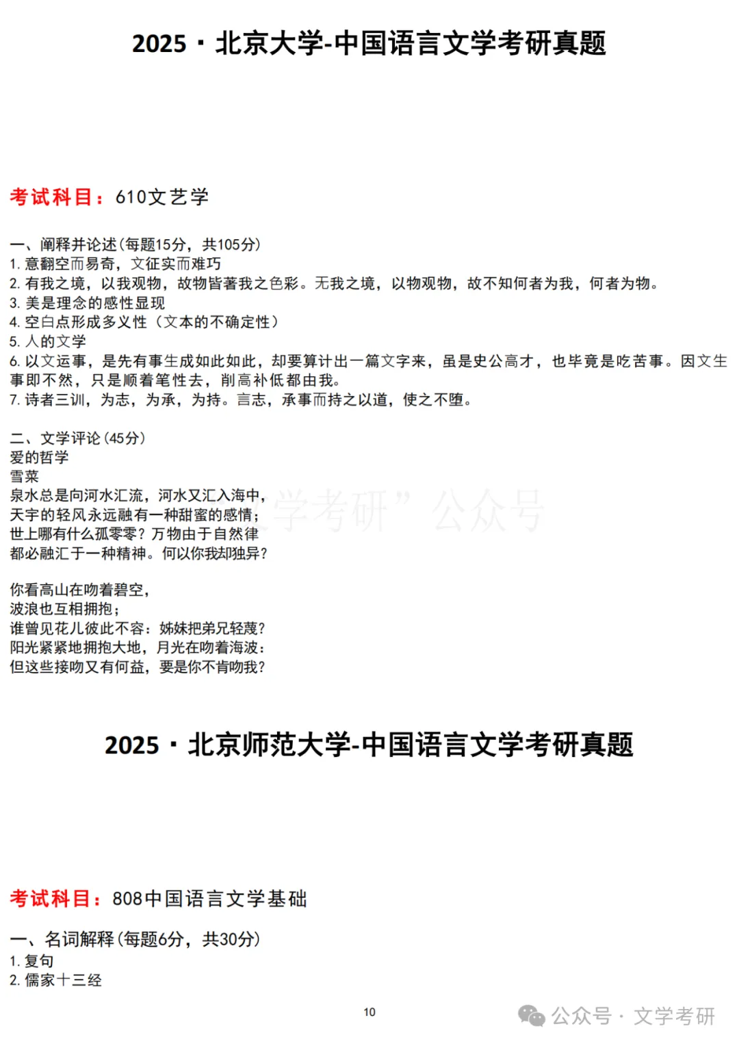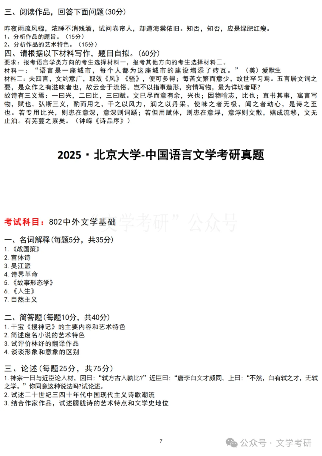 回复“真题”,可下载各大高校文学考研历年真题;