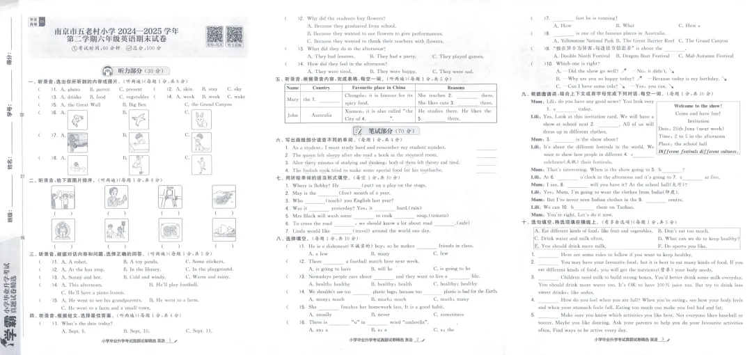 >26版《学霸小学毕业升学考试真题试卷精选34套》江苏专用英语