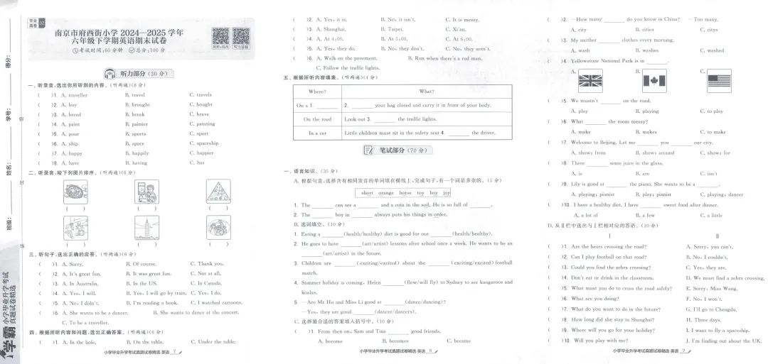 26版《学霸小学毕业升学考试真题试卷精选34套》江苏专用英语