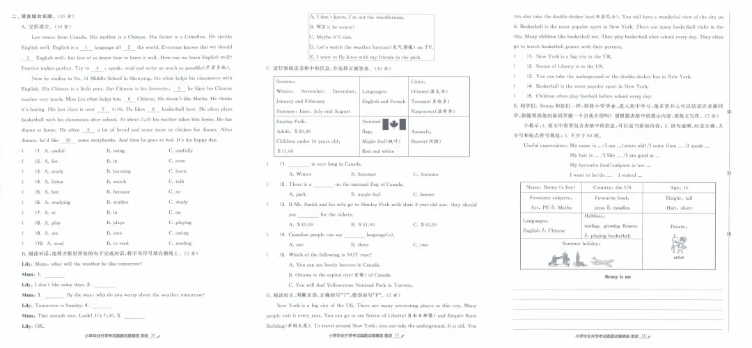学霸小学毕业升学考试真题试卷精选34套》江苏专用英语