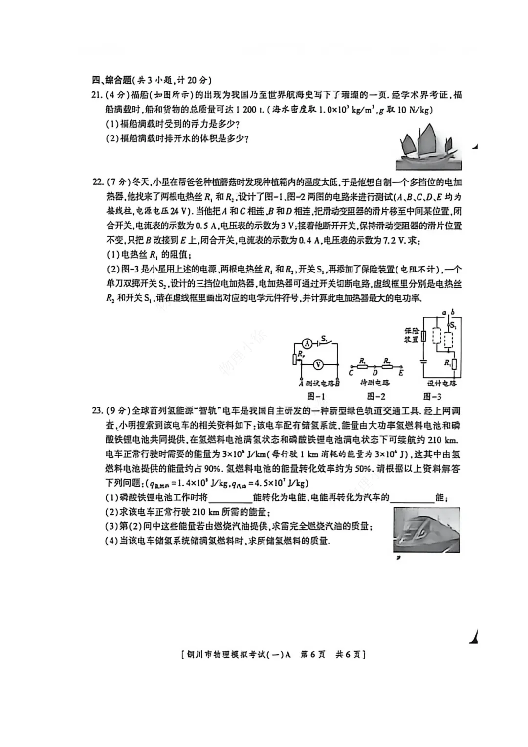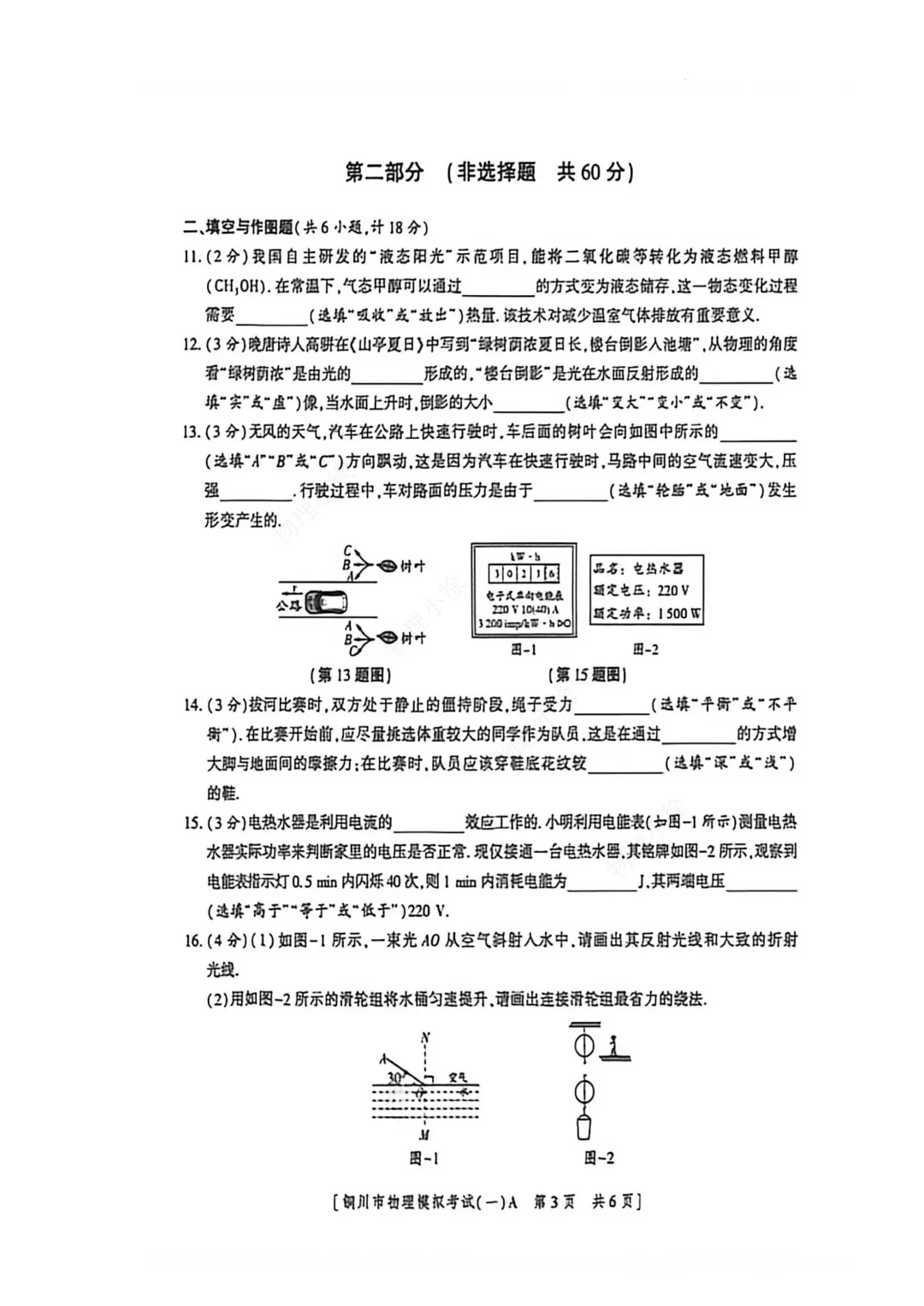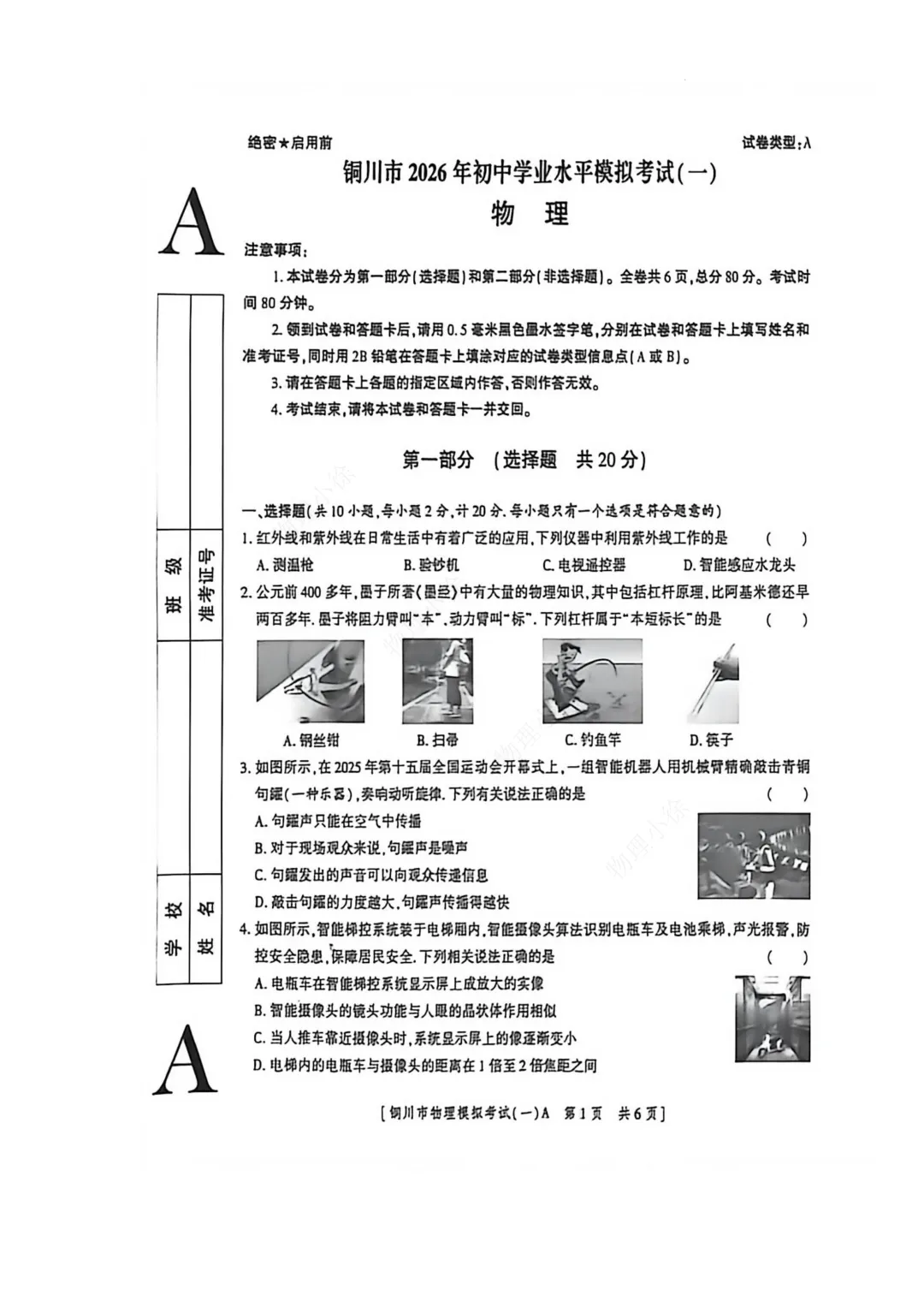 2026铜川市中考物理(一模)试卷+答案