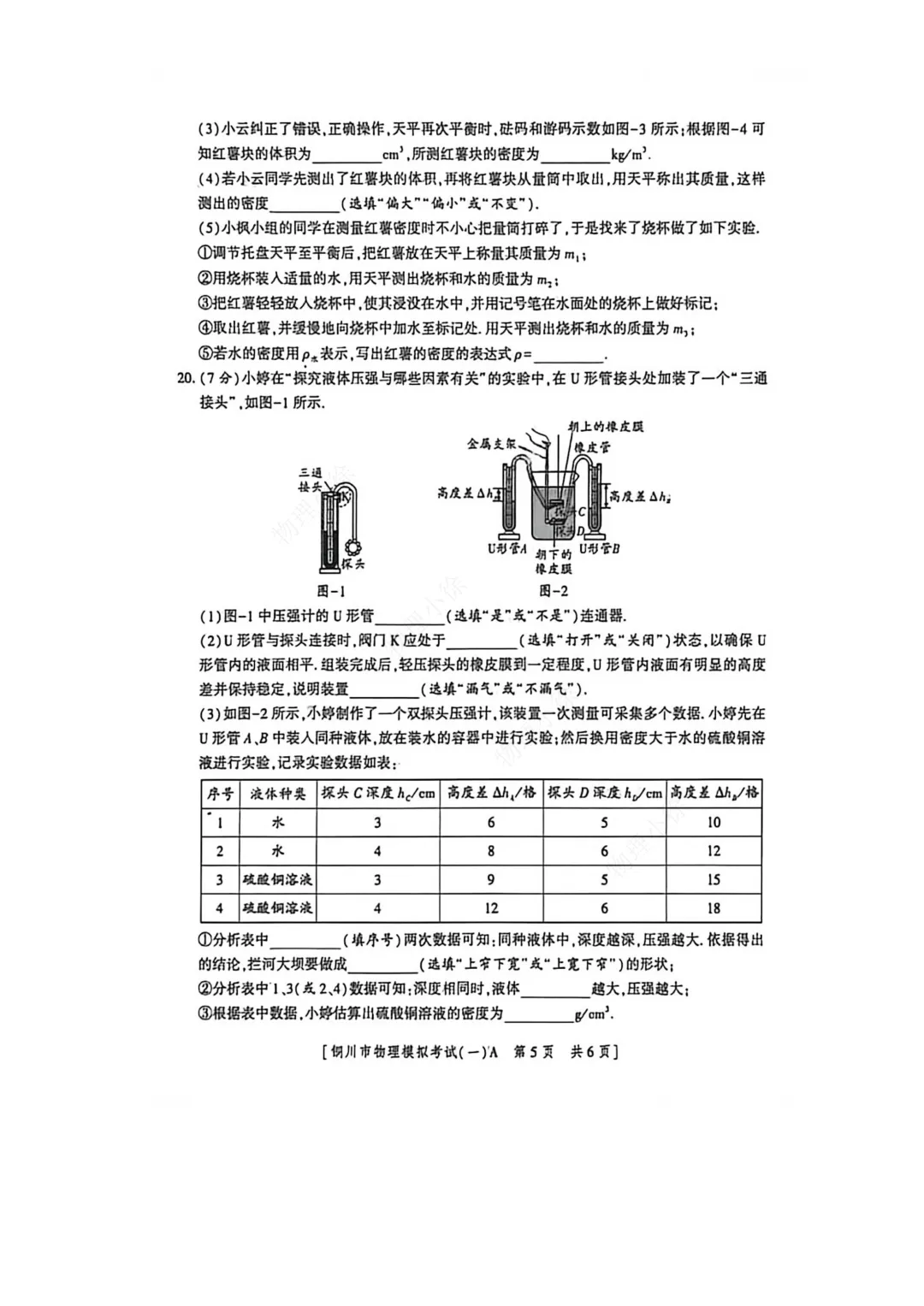 >2026铜川市中考物理(一模)试卷+答案