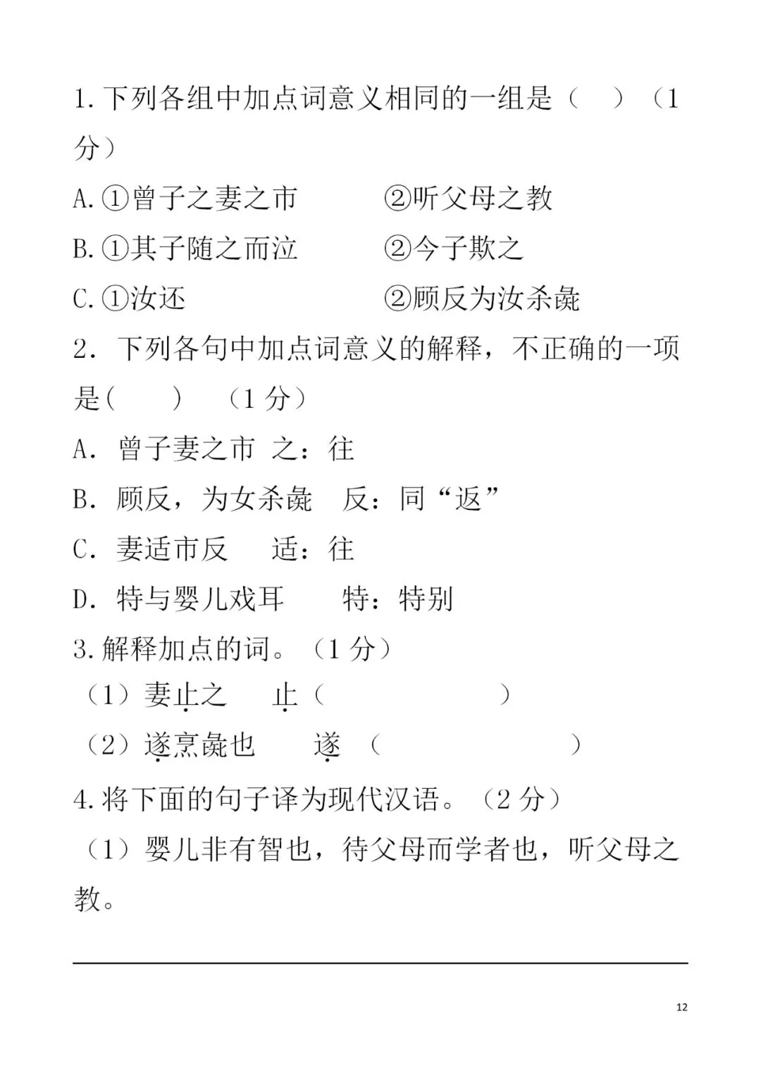 >统编六年级语文(下册)第一单元精品试卷及答案