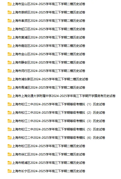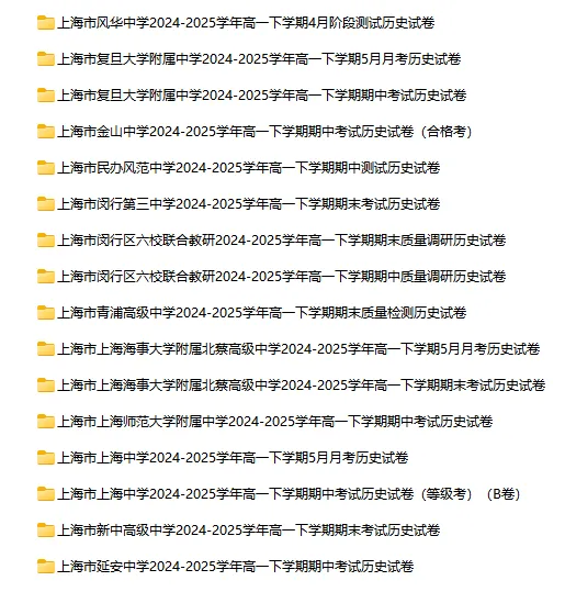 >2024-2025学年上海第二学期历史试卷汇总