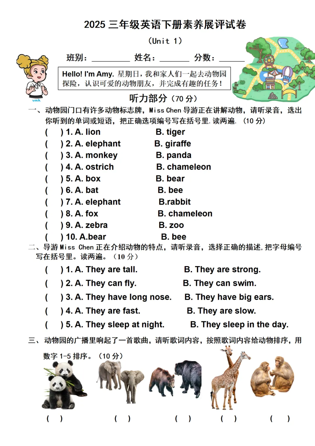 2025新三年级下册U2大单元句型学习歌曲