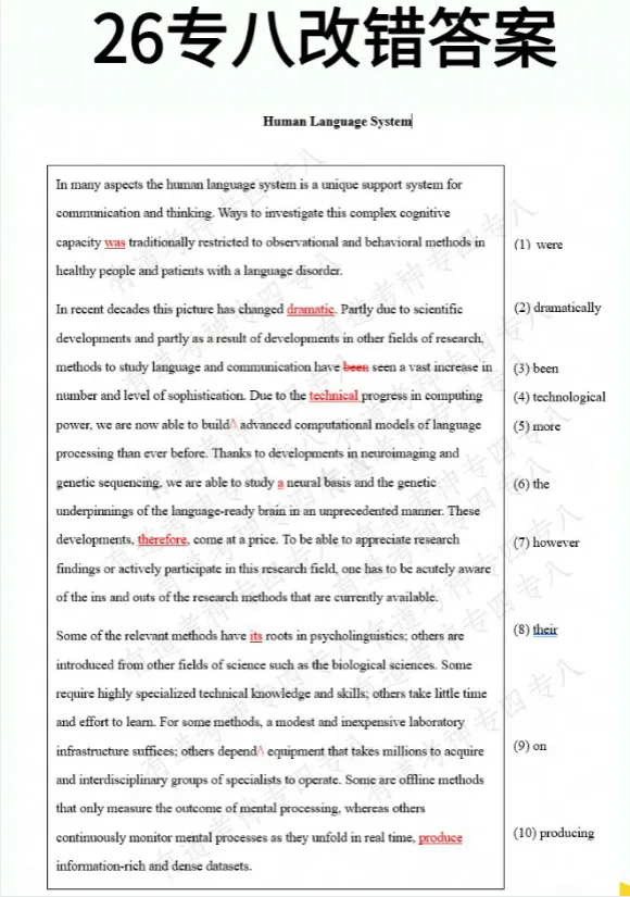 2026年专八真题及答案