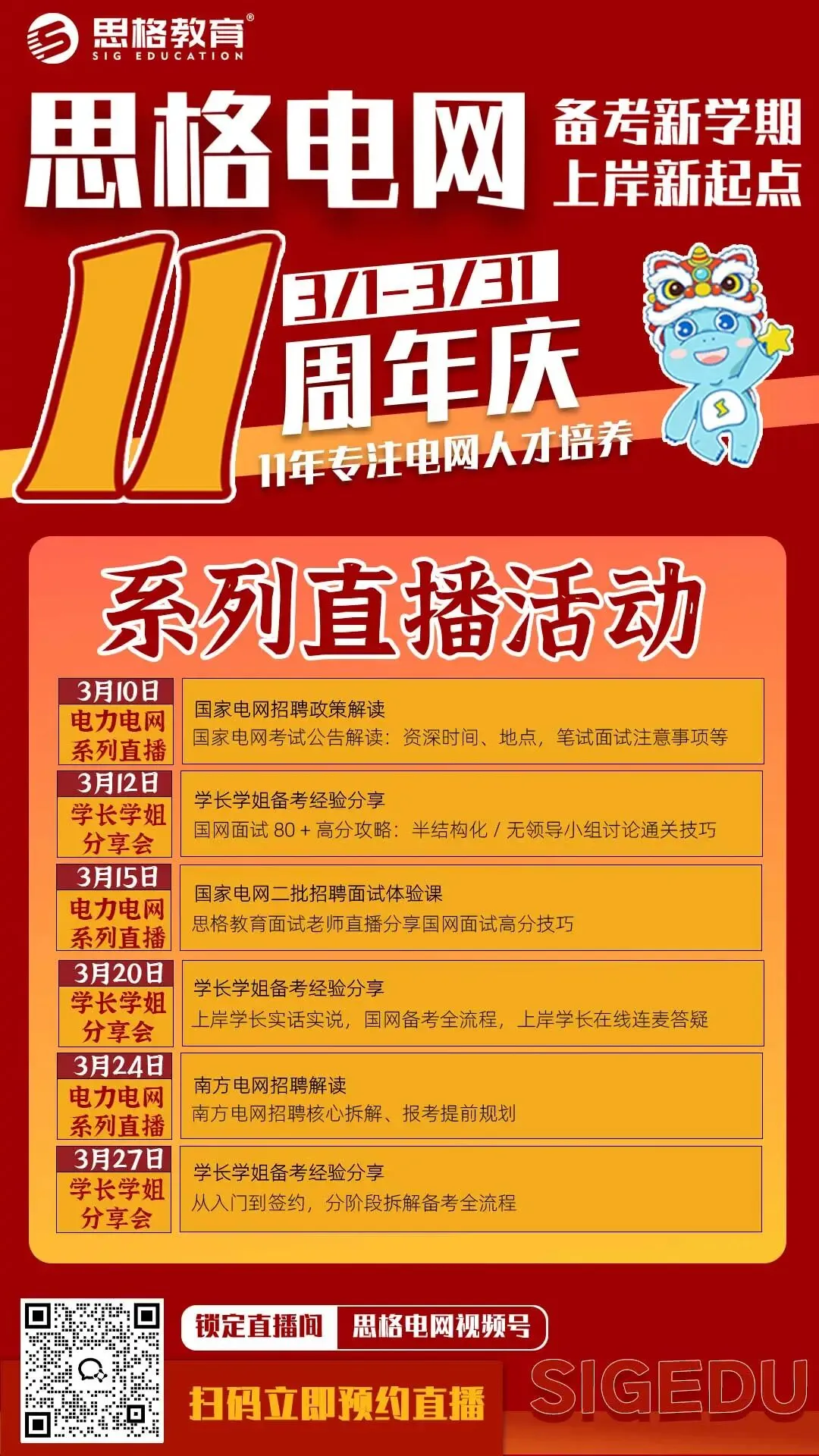 思格电网金领系列课程方案,是思格教育在电网培训行业内较早提出的一站式全年全程国家电网招聘考试备考方案,经过9年的不断更迭,从“电网蓝领计划”到“电网芒果计划”,直至今日的“电网金领系列”课程,它一直秉承的都是“学员报1次名,课程花1次钱,备考1次上岸”的一站式招聘政策解读、报考指导、笔面培训、择岗指导的电网上岸方案!