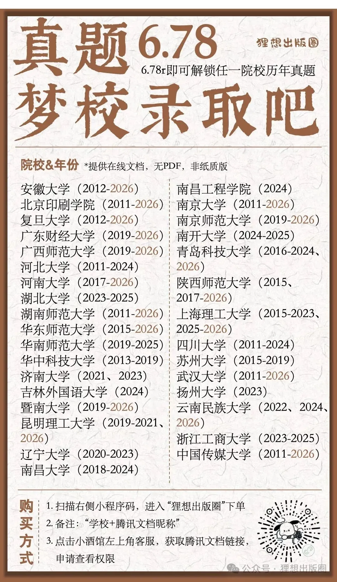 狸想出版圈|出版专硕各校历年真题大合集 (2027年·分院校版)
