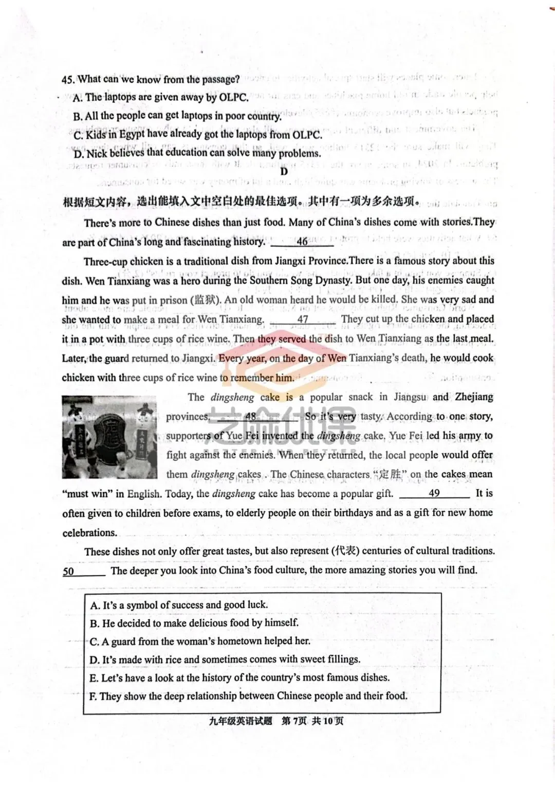 2020年江西省初中学业水平考试英语真题卷及参考答案