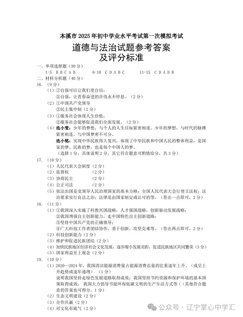 2025年4月本溪九一模年历史、道法试卷