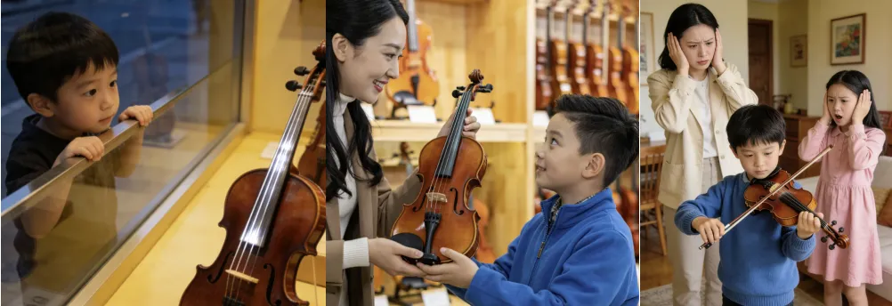 图片为小男孩在拉小提琴
