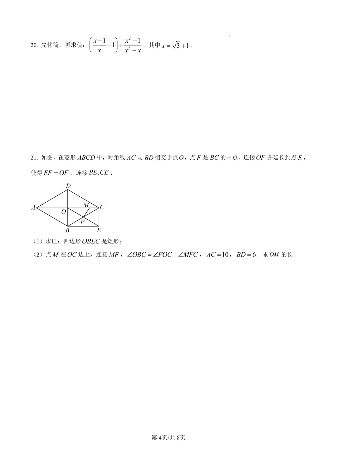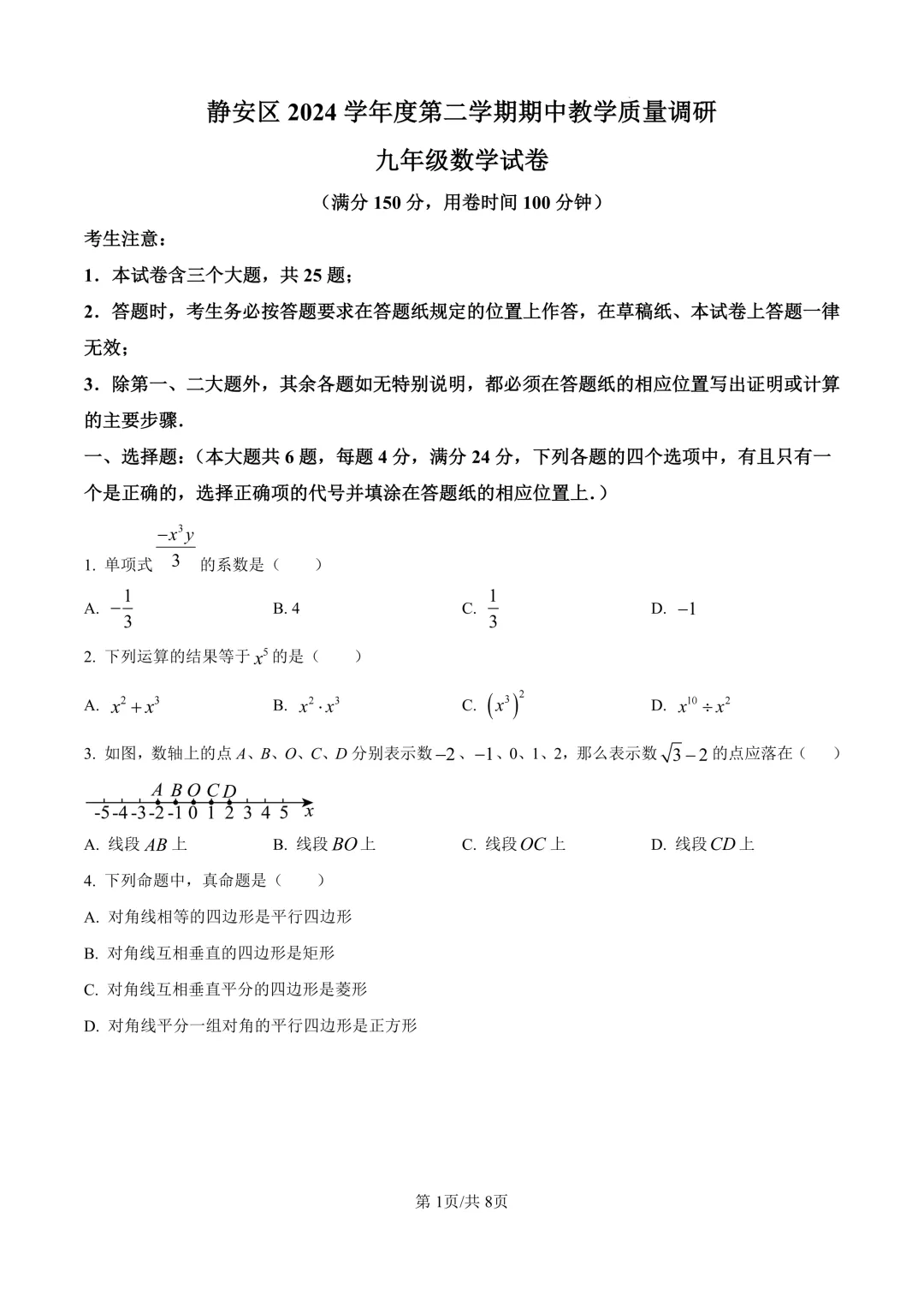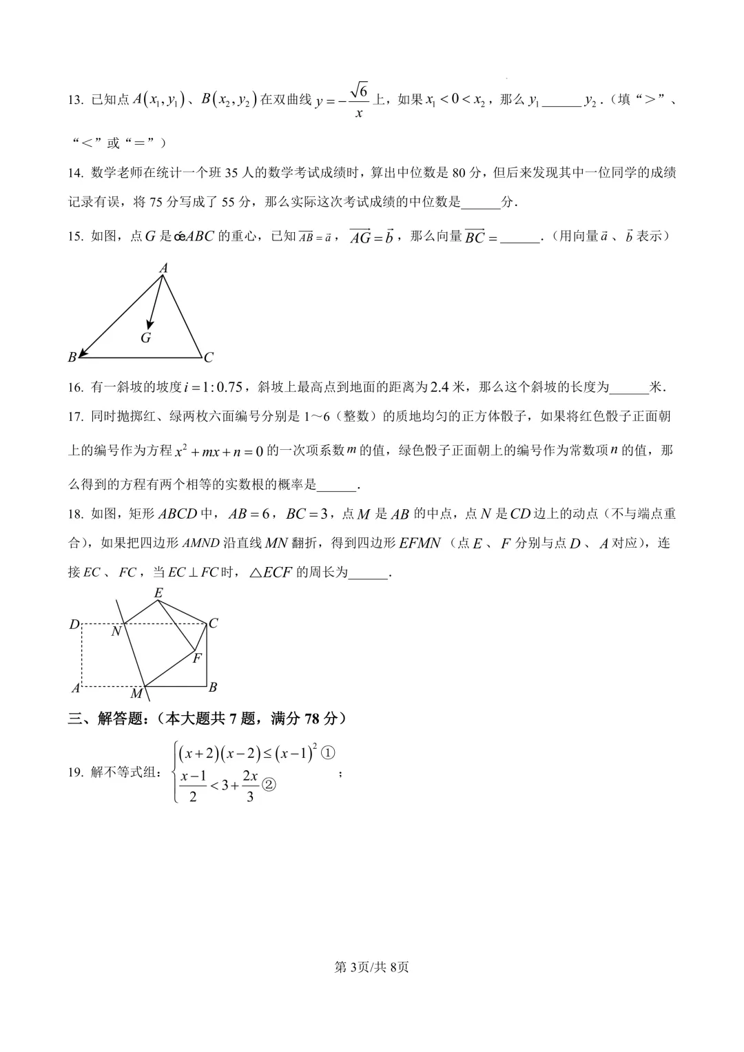 河南省2025年中招数学试卷