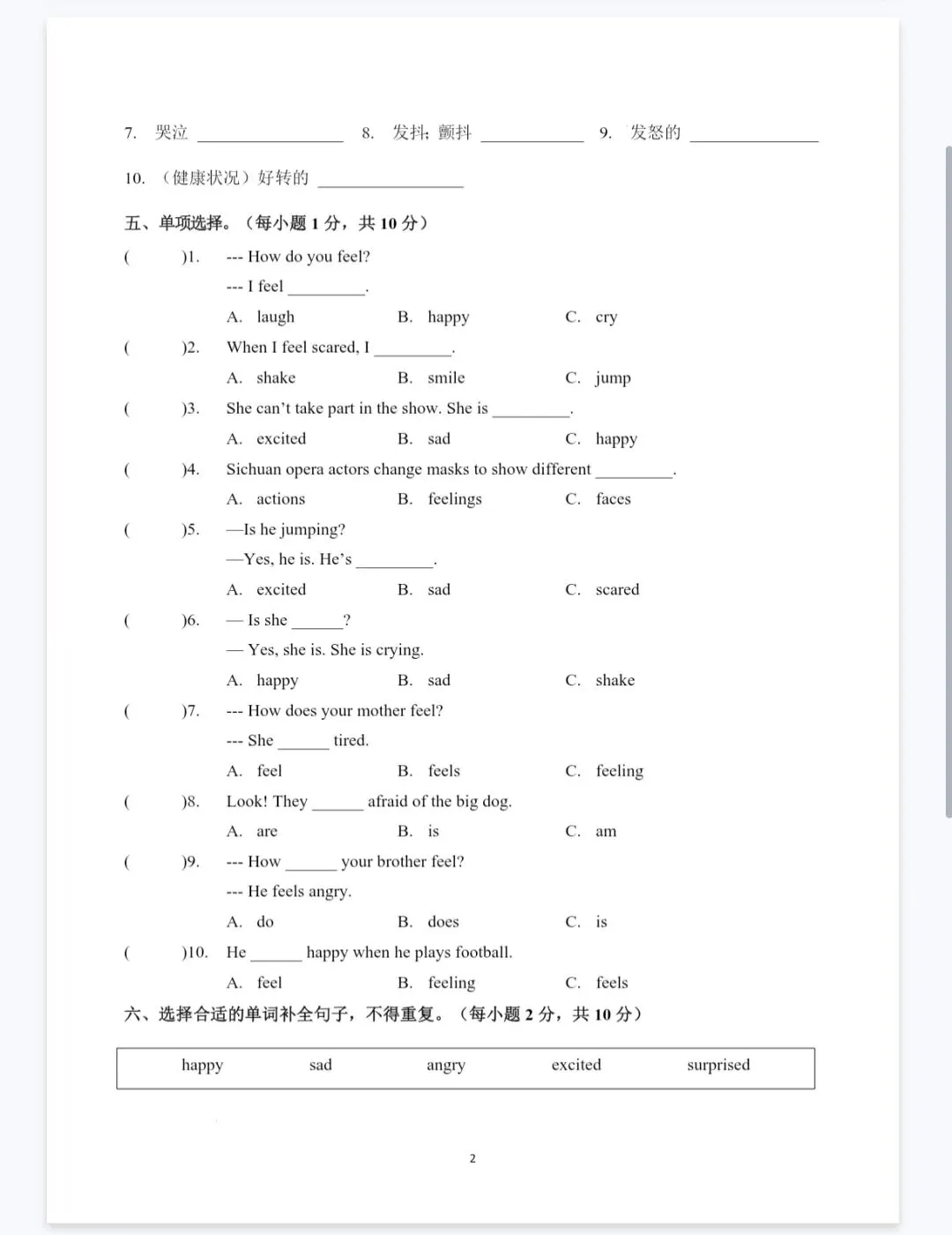 【免费下载】外研英语五下|六下单元同步练习题
