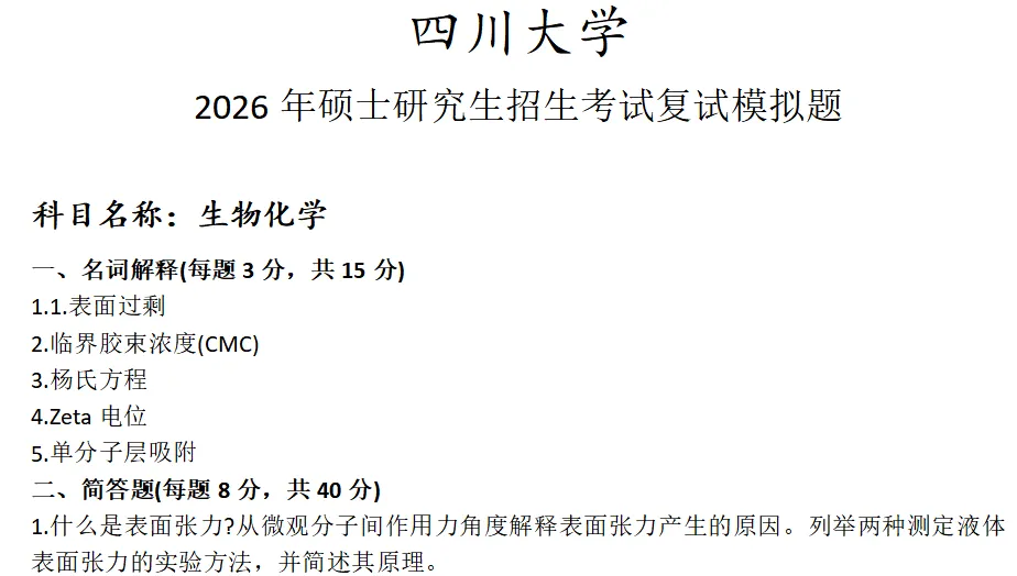 四川大学生物化学考研复试真题模拟