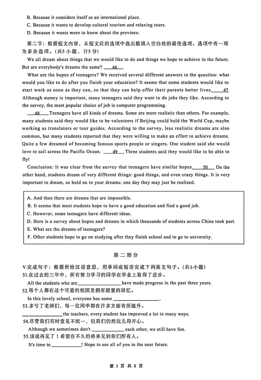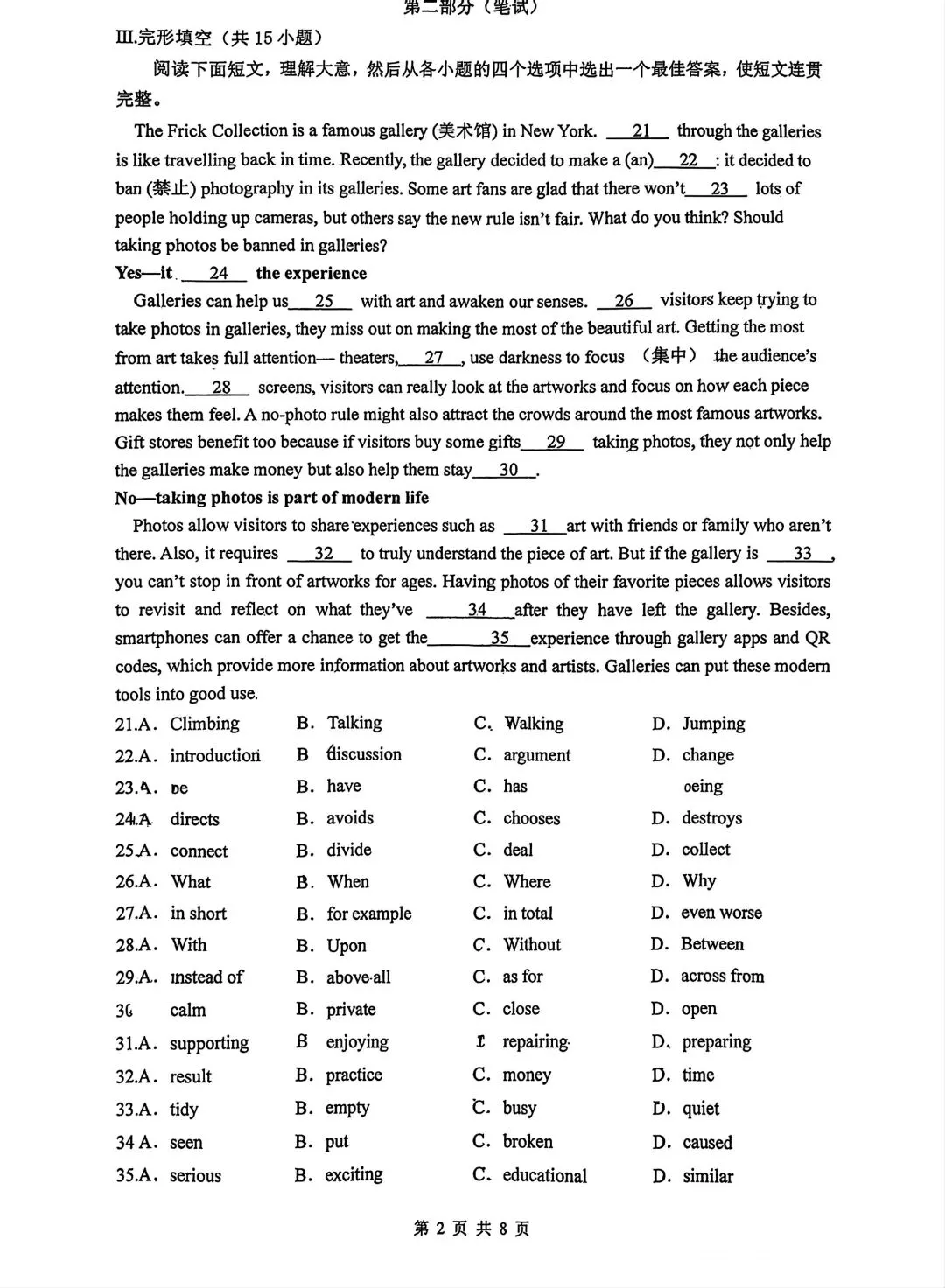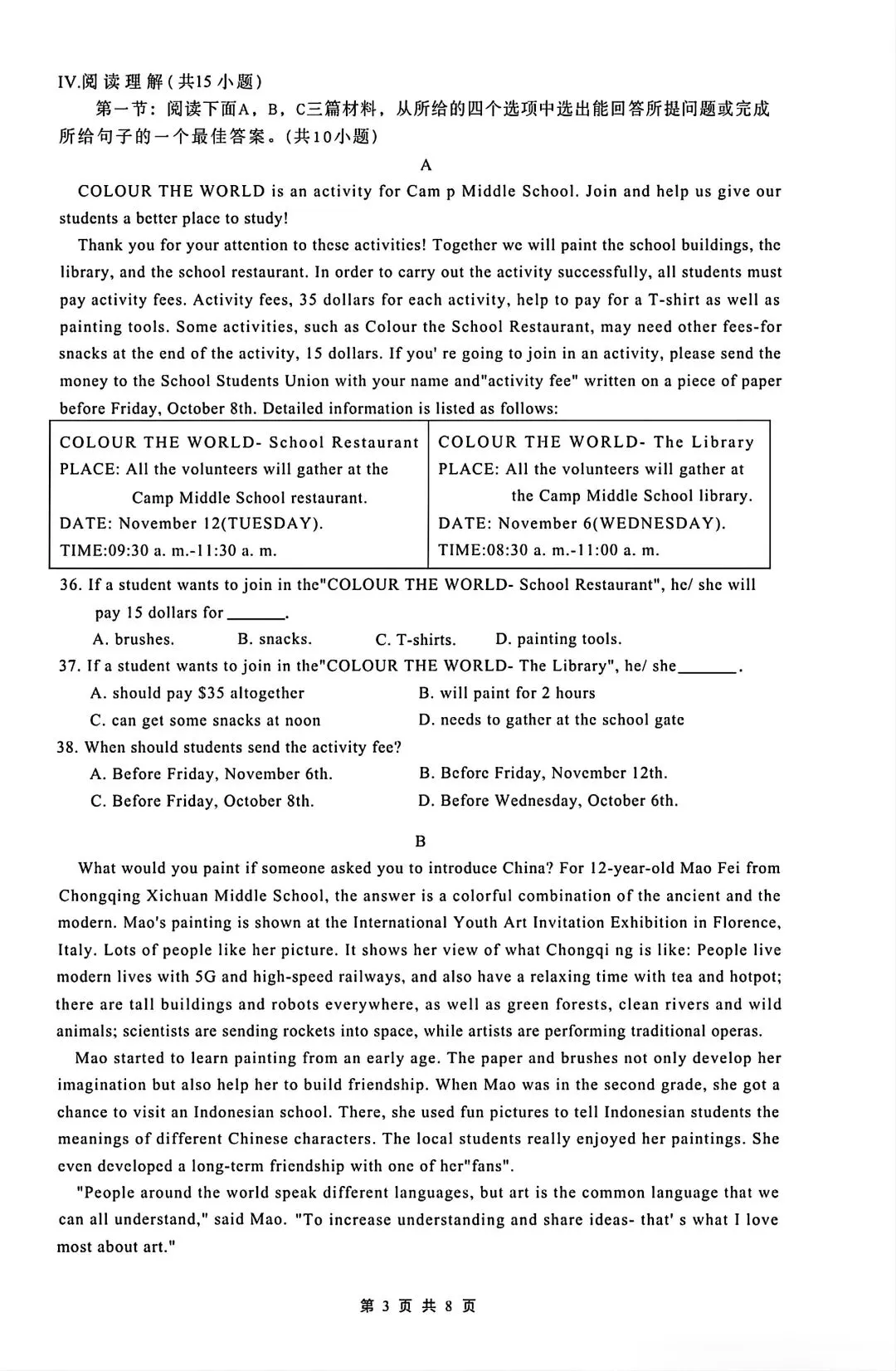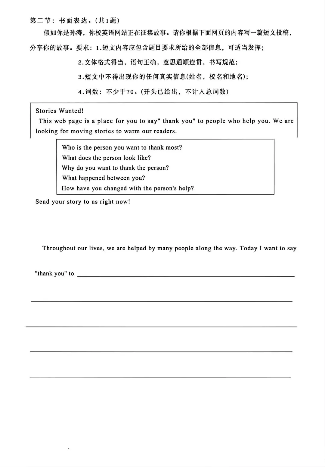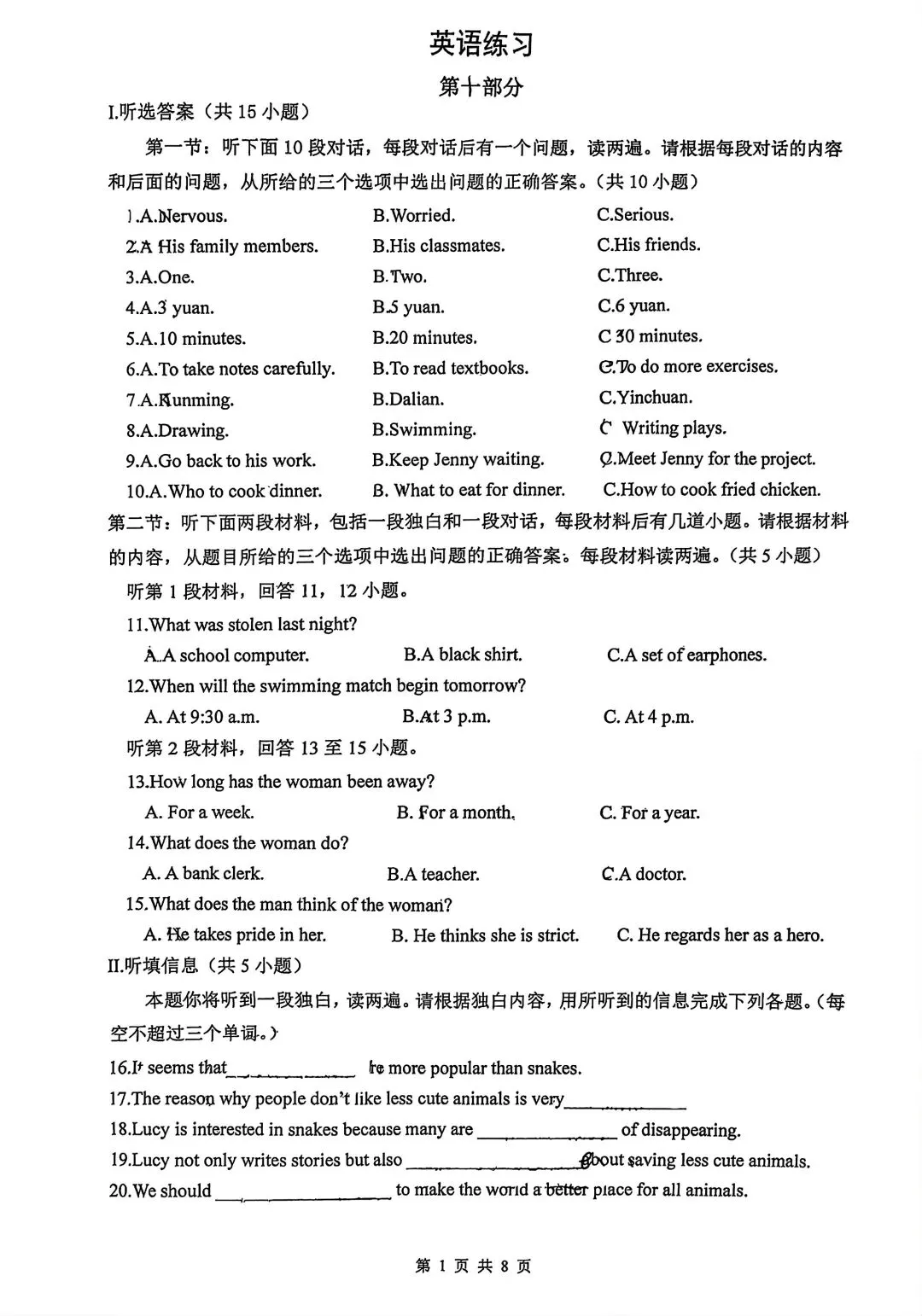 某TY高一去年下学期第一次月考英语试卷