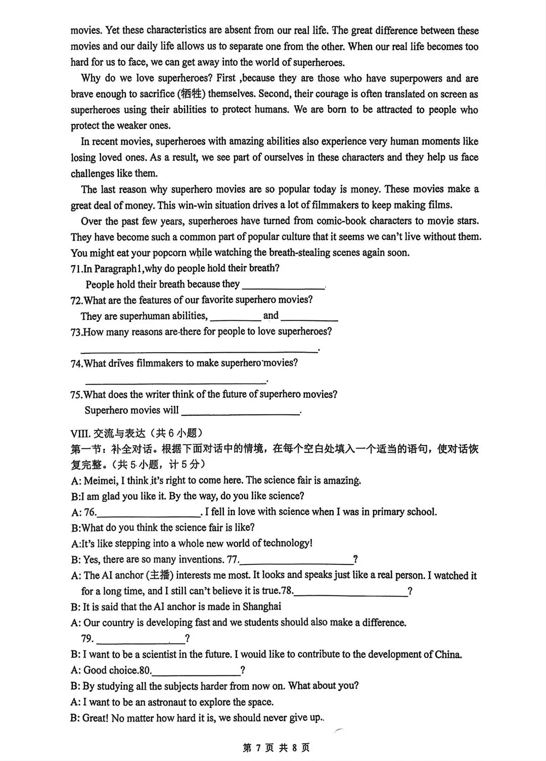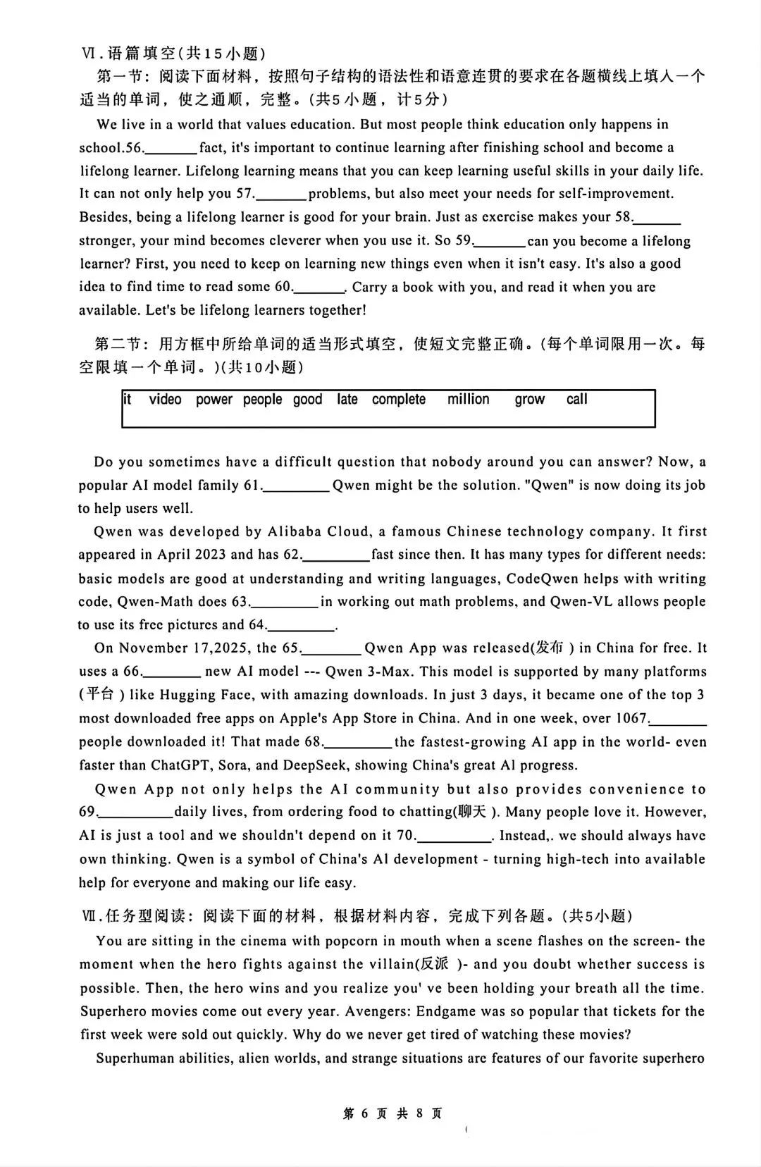 【免费下载】六年级(下)英语期末测试卷《冀教版》,PDF电子版,可打印