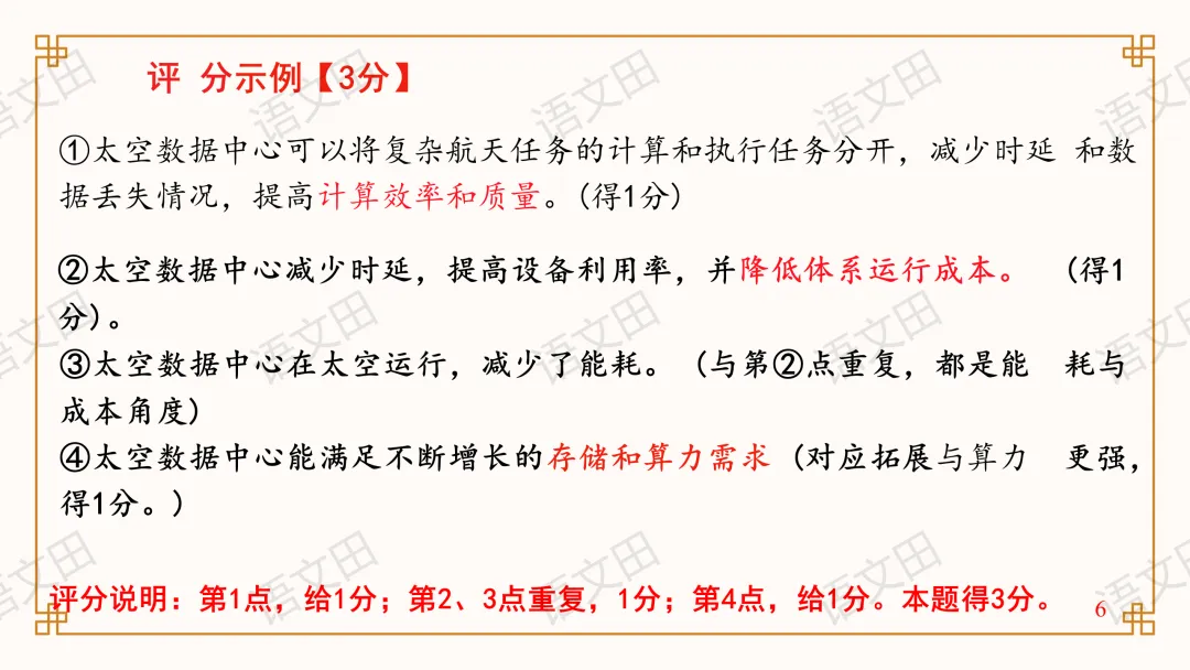 题意理解 精准把握“跳出局限→外置大脑→开辟新路”完整逻辑 理解“跳出局限”但未深入挖掘 只抓“局限”二字,忽略“跳出”和“开辟” 完全偏离,大谈航天成就
