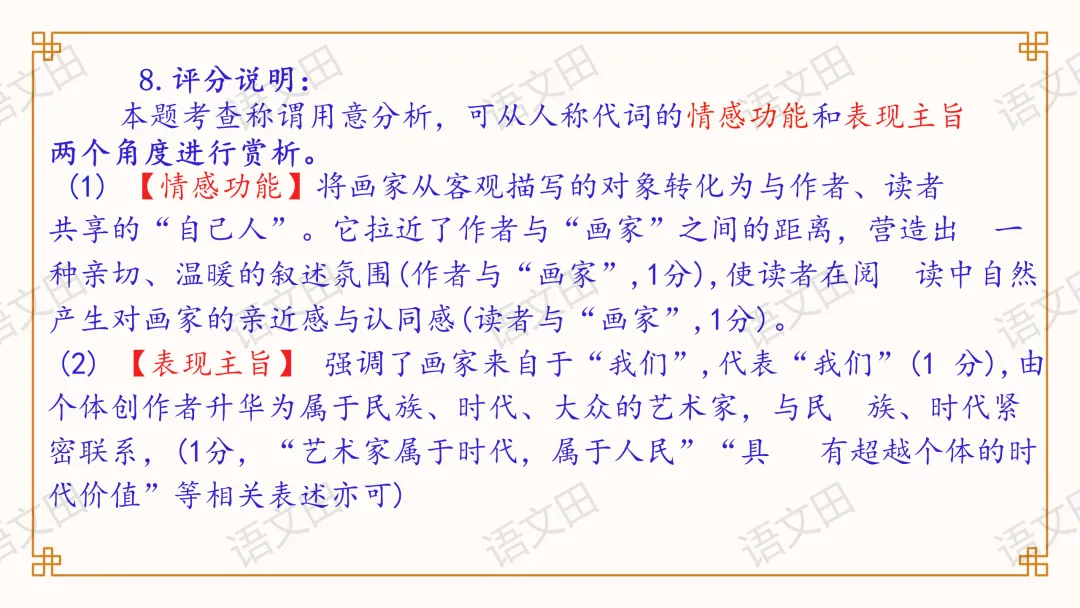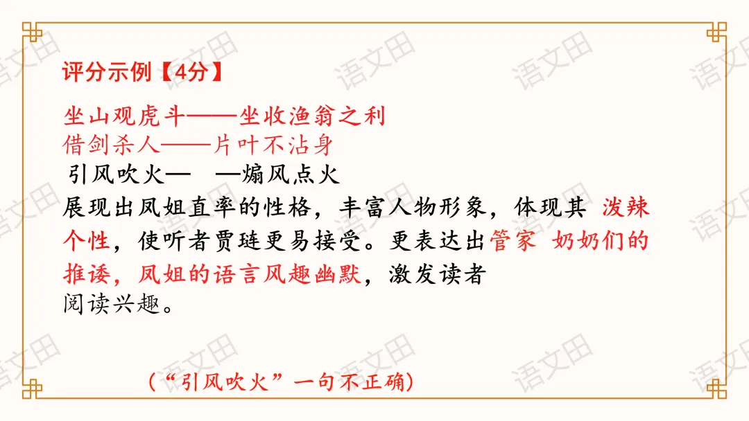 · 发展(8分):材料丰富但方向错误,无深刻性,无创意,未联系自身。