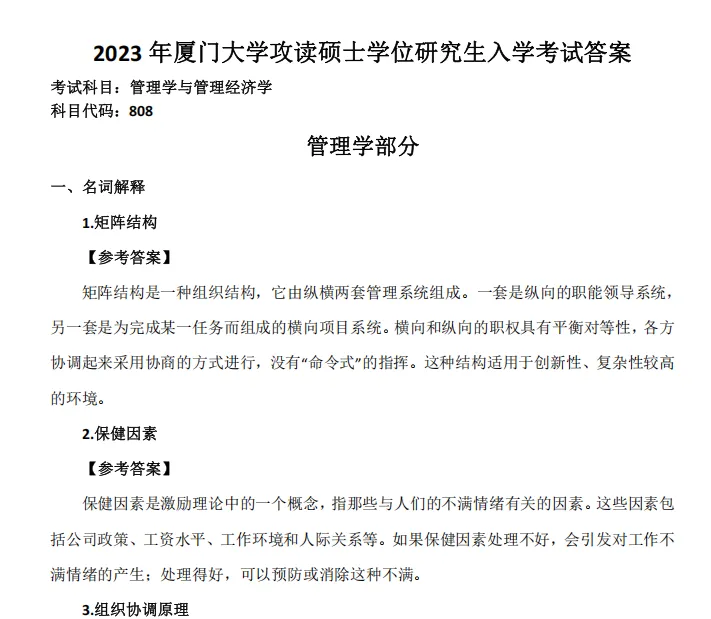 2003-2023年厦门大学808管理学与管理经济学考研真题参考答案【24-25无答案】
