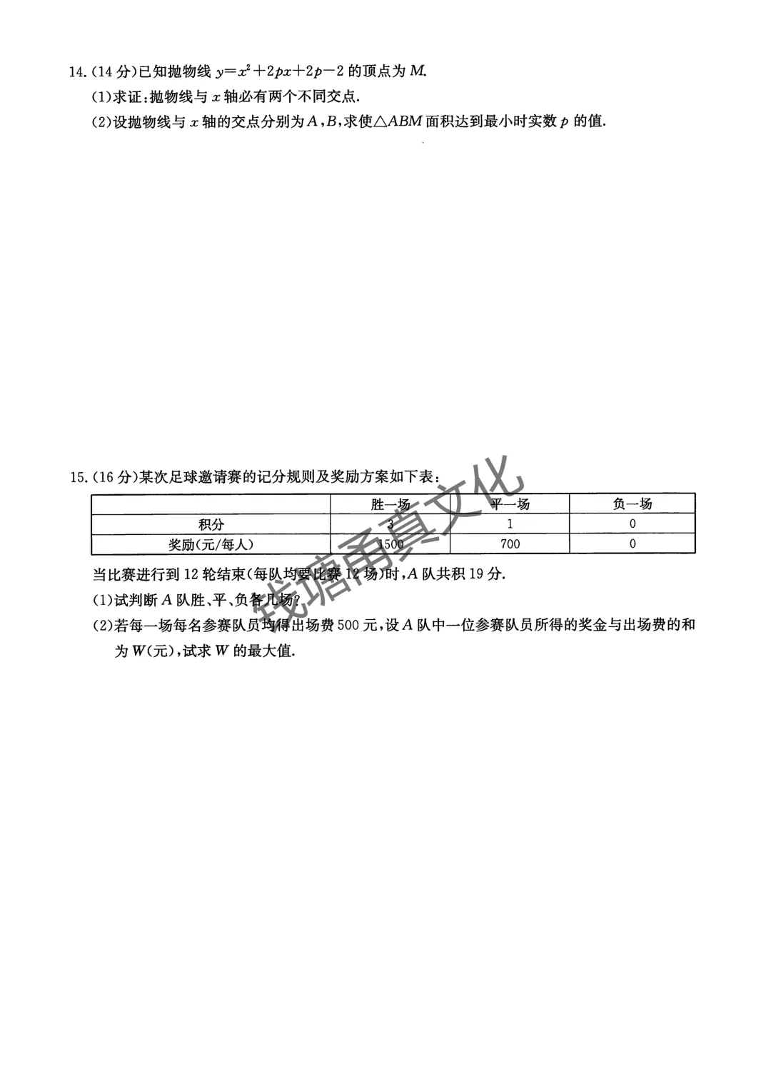 杭州高级中学提前招生数学试卷T12