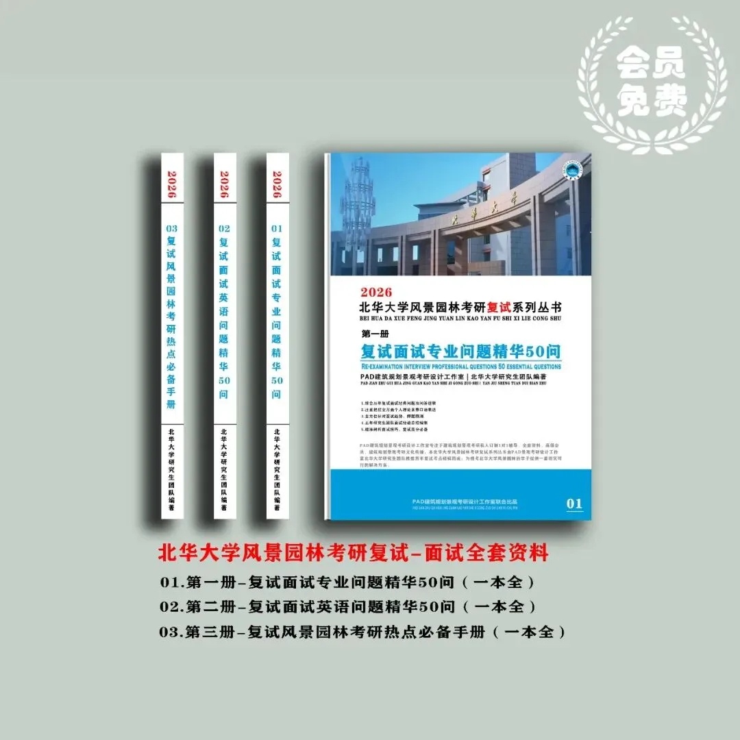 02、复试全套资料:含专业问题精华50问(含答题模板)、英语问题精华50问(含答题模板)、风景园林复试面试必备热点手册,26考研必备资料!