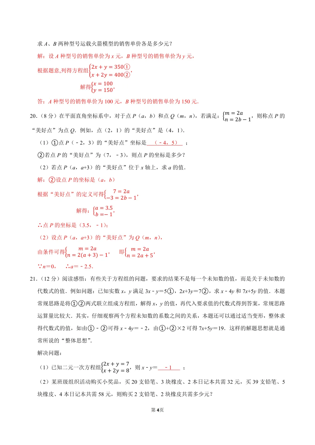 《二元一次方程组》单元试卷