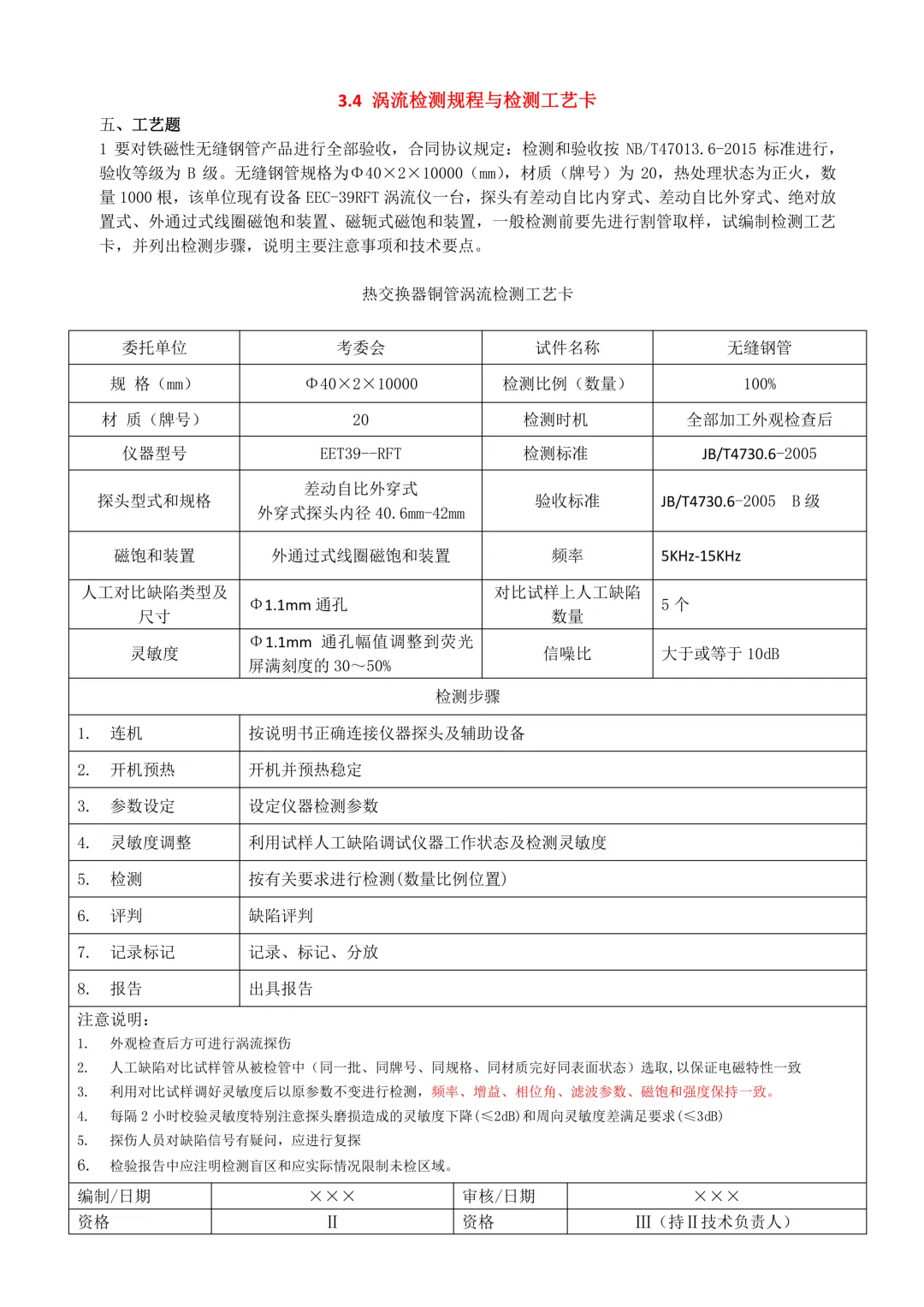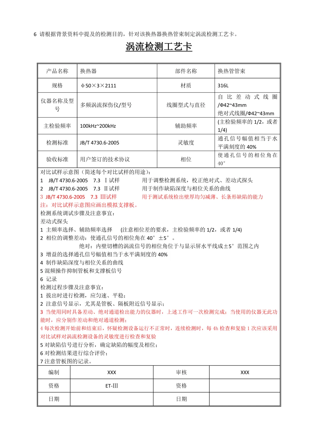 >【重点】涡流检测操作指导书习题--可下载