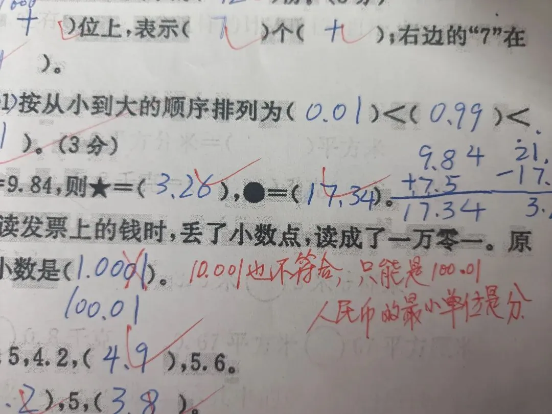 这部分考察对小数的理解,孙女一开始有些迷糊,咱们慢慢理清楚。