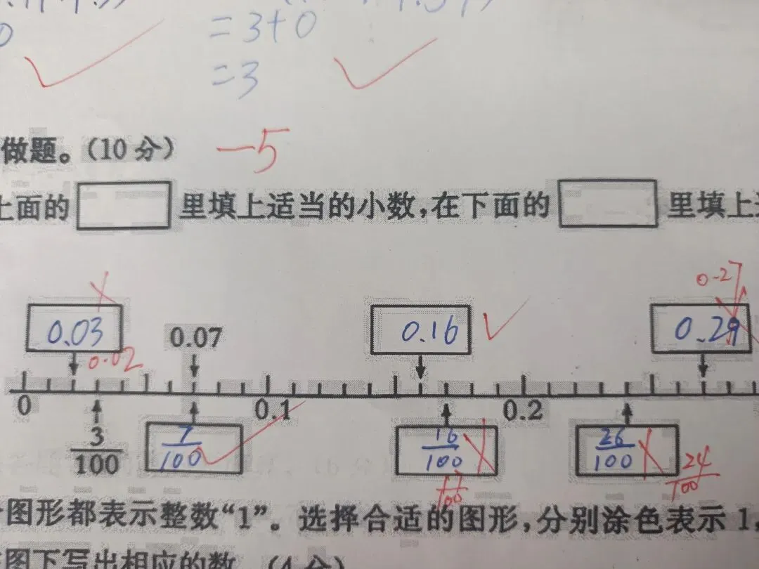 第四大题的数轴填数,孙女不是不会,就是太粗心没数清格子。