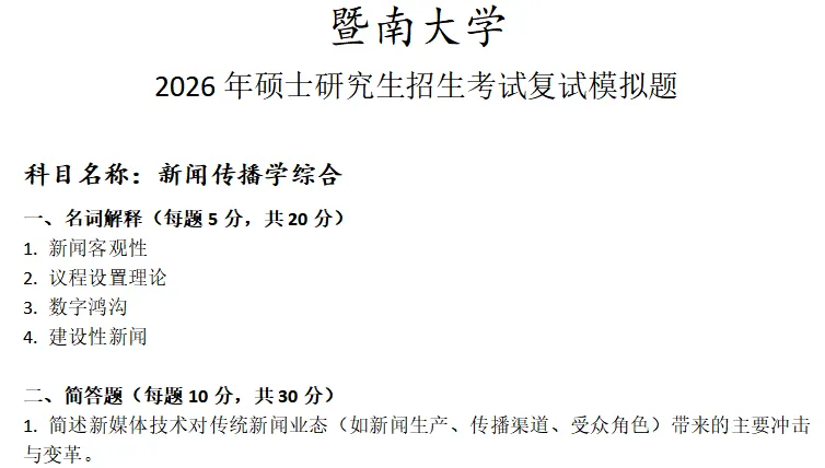 当前位置:首页>考研真题>暨南大学新闻传播学综合考研复试真题模拟