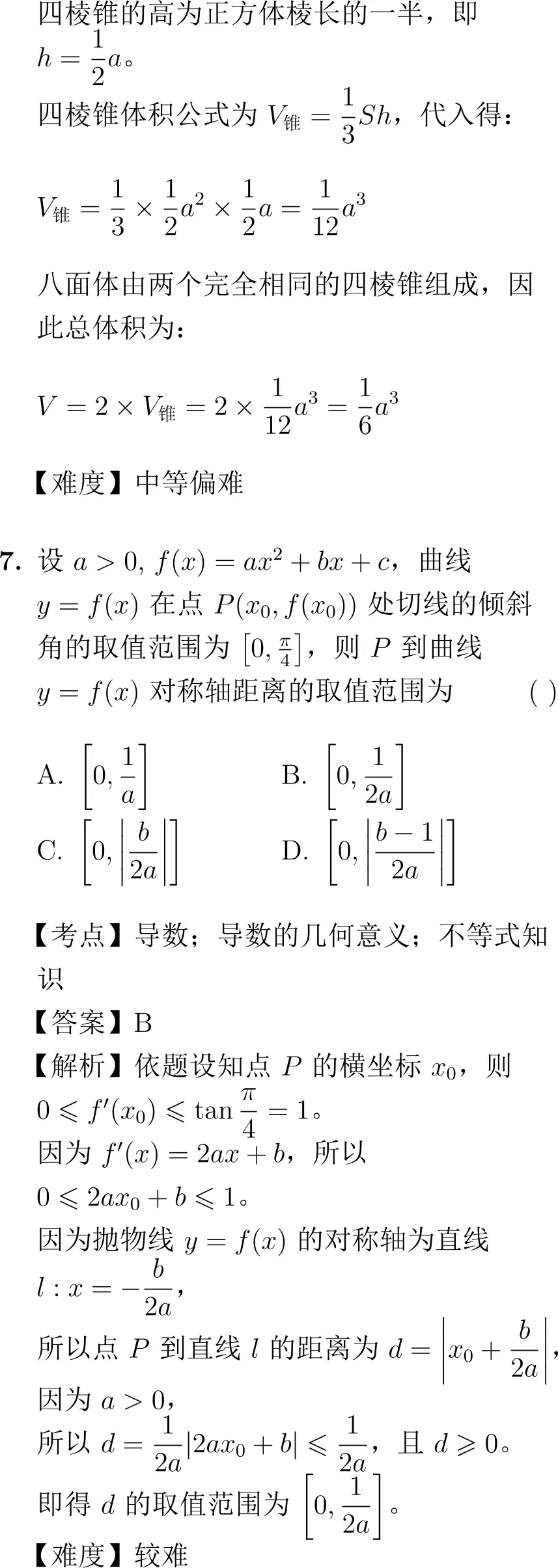 再次,突出空间想象能力的考查。立体几何板块比重较大,从选择题的正方体内接八面体体积,到填空题的空间垂直判定,再到解答题的线面角与距离计算,全方位检验了学生的空间直观素养,尤其是第12题正四面体外接球问题,巧妙利用正方体模型转化,体现了“巧解”的智慧。