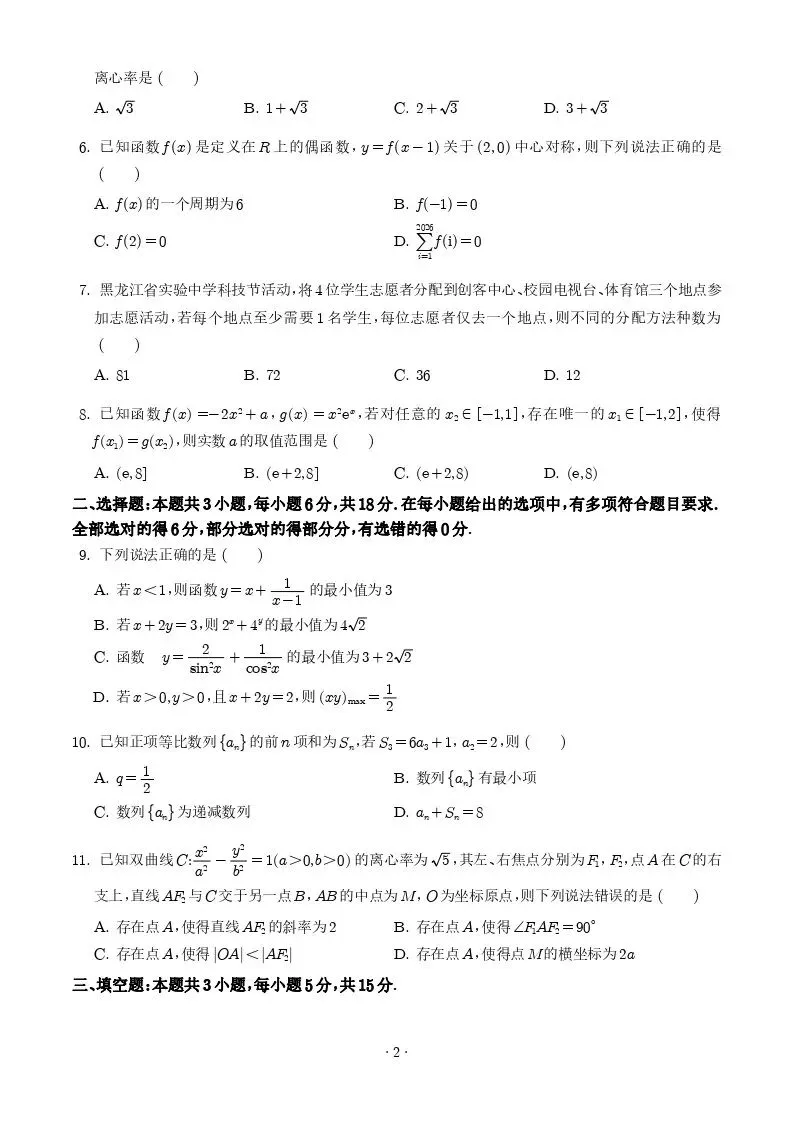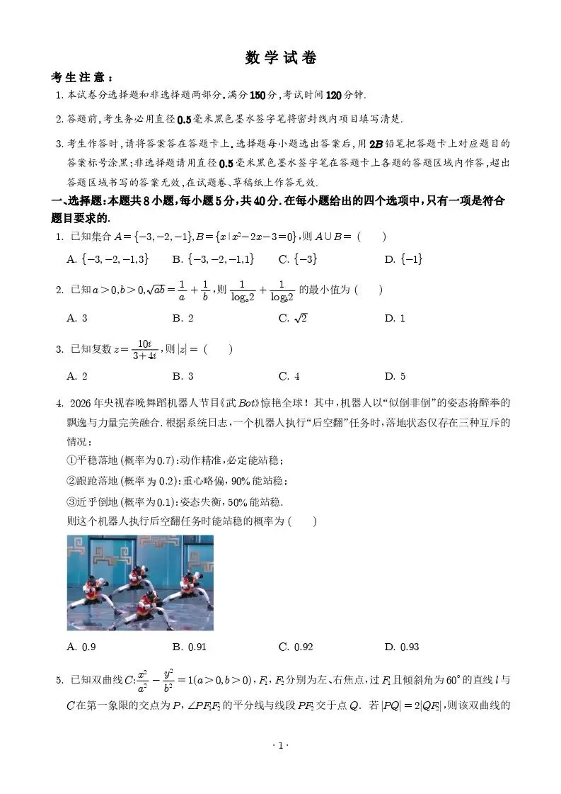 >【高一、高二、高三最新月考试卷】安徽铜陵市2026届高三下学期第一次质检数学+答案