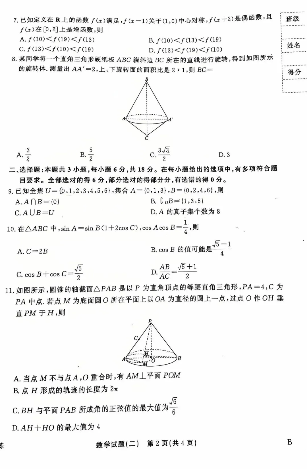 对高三学生的备考建议: 1. 优先巩固基础:回归课本公式,反复练基础题,保证零失误; 2. 中档题专题突破:整理条件概率、统计等题型模板,刷同类题熟练解题流程; 3. 难题攻坚:总结函数对称性、立体几何建系等思路,练综合套卷提升时间分配能力;4. 错题分类复盘:按基础/中档/难题整理错题,定期回顾补漏洞。