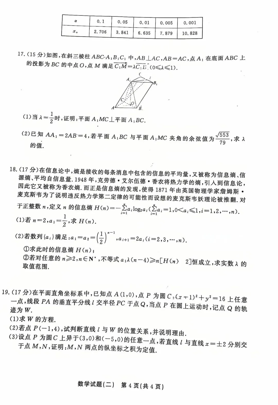 高三和复读班的周考试卷分析,整体难度贴合高考,呈“基础-中档-难题”梯度分布:1. 基础题(约60分):单选1-4、多选9、填空12、解答15,聚焦复数、导数切线、集合、基础导数应用等核心概念,属送分题,考察公式记忆与基本计算。 2. 中档题(约55分):单选5-6、多选10-11、填空13、解答16,覆盖条件概率、抛物线性质、解三角形、统计回归等考点,需掌握题型模板,是提分关键区分层。 3. 难题(约35分):单选7-8、填空14、解答17-19,涉及函数对称性综合、立体几何二面角、新定义信息熵、轨迹方程综合,考察知识迁移与创新思维,难度较高。