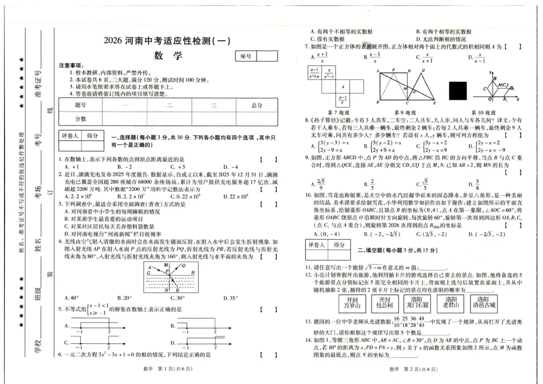 2026年河南省实验中学中考模拟考试数学试卷及解析(3.18)【附7科】【文末附下载链接】