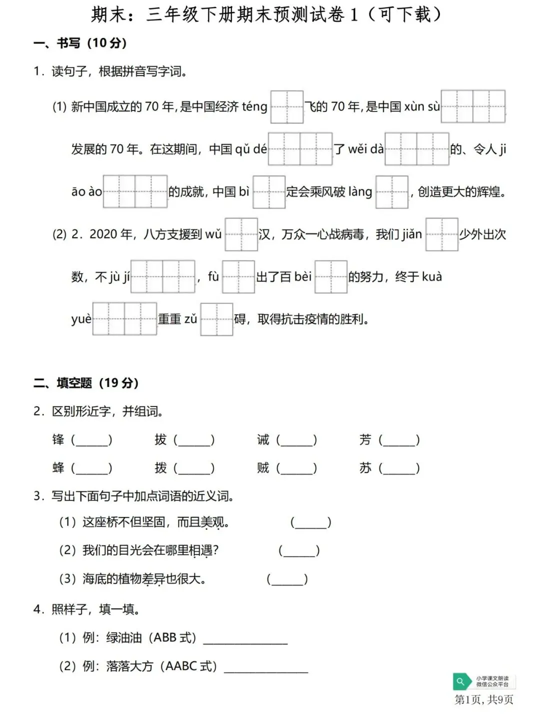 >期末:三年级下册期末预测试卷1(可下载)