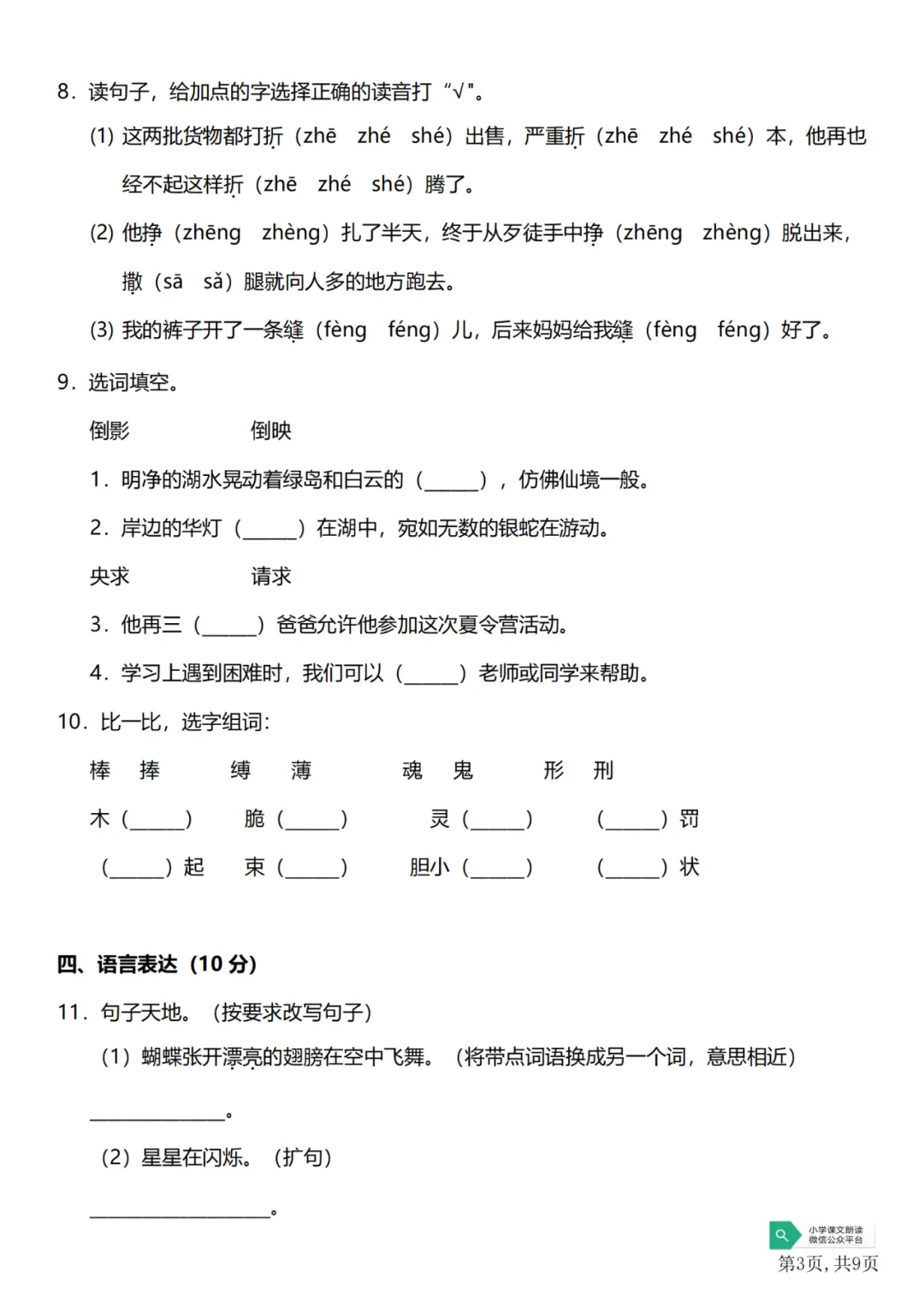 人教版三下第二单元单元试卷