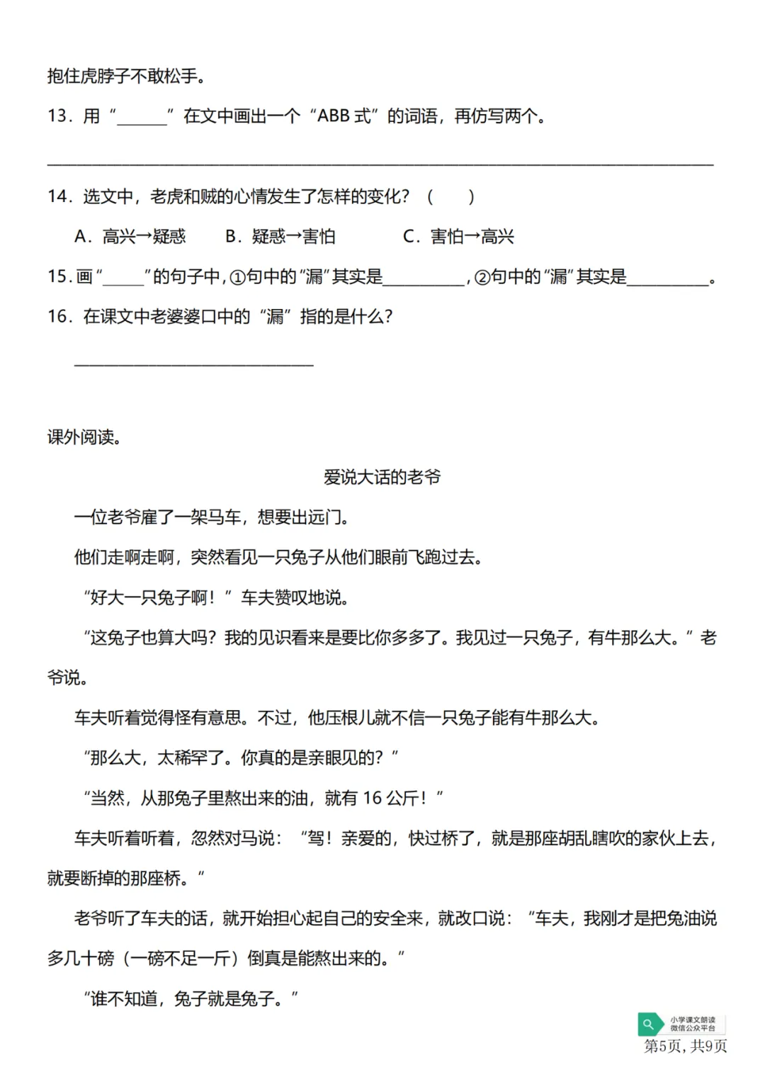 一二年级阅读考题专项训练29篇(可下载)