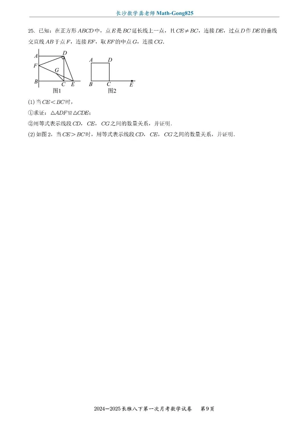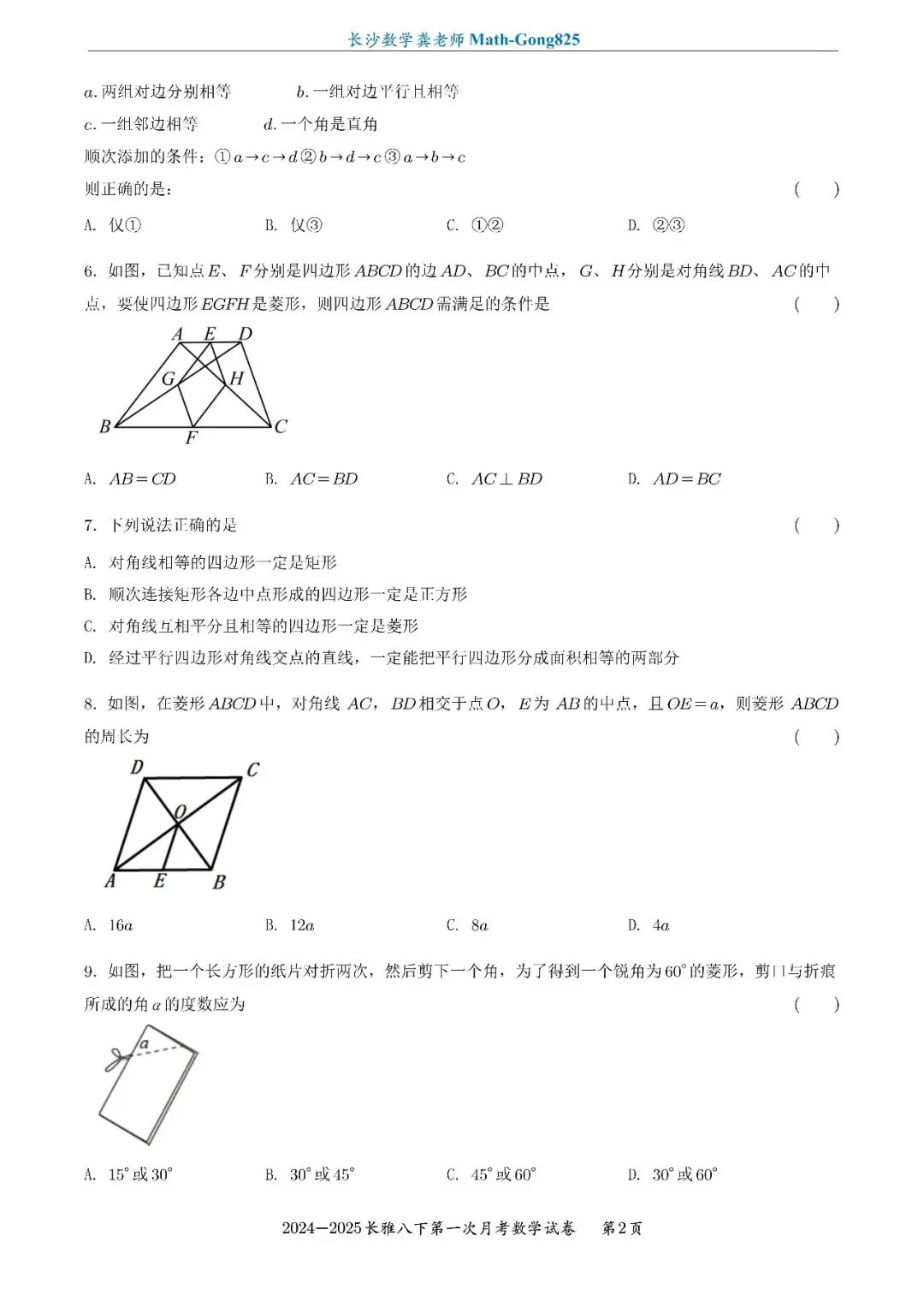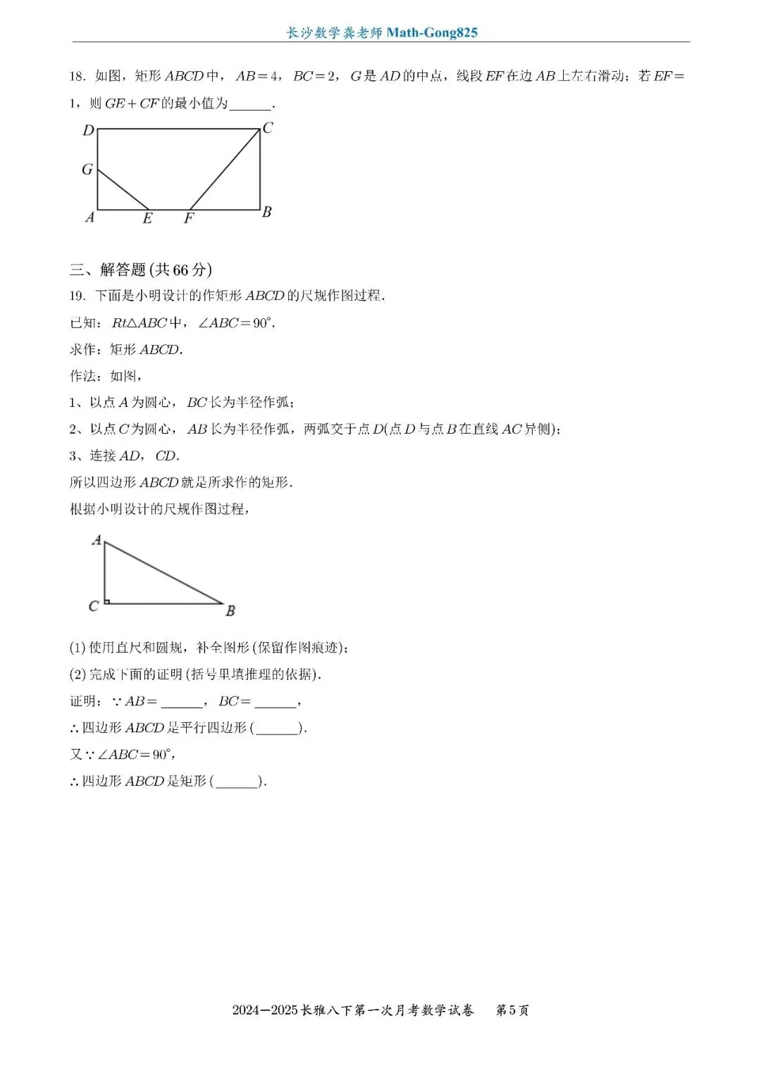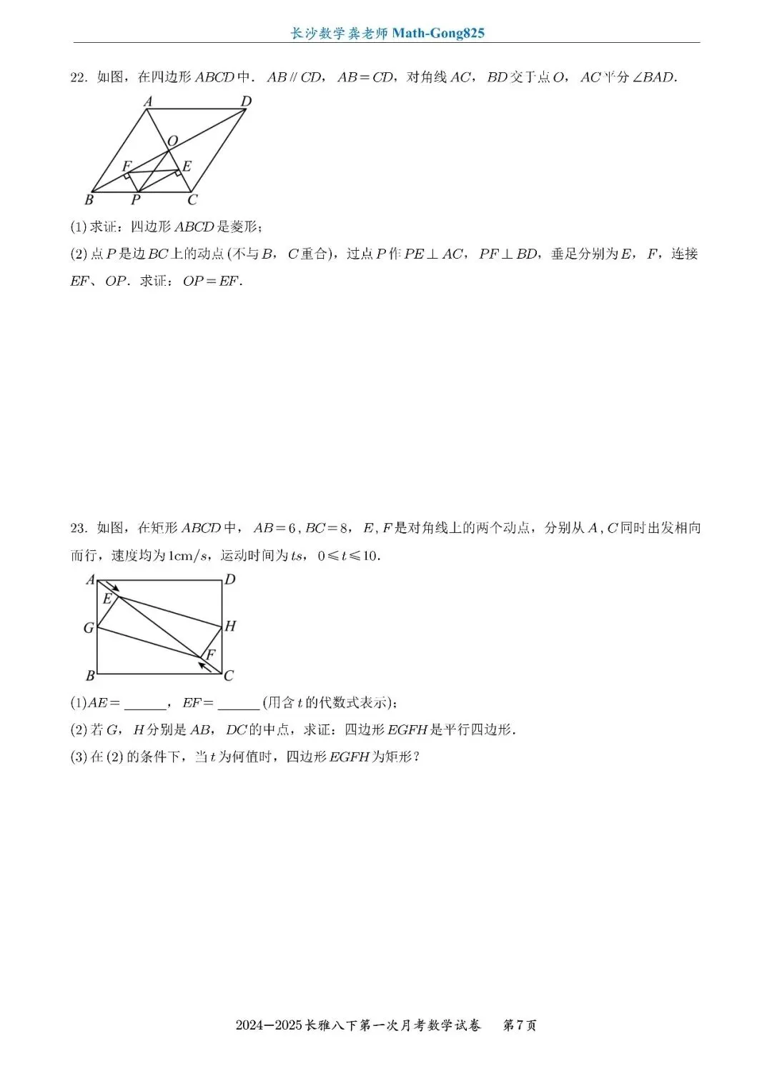 25年春季长雅中学八下第一次月考数学试卷-原卷